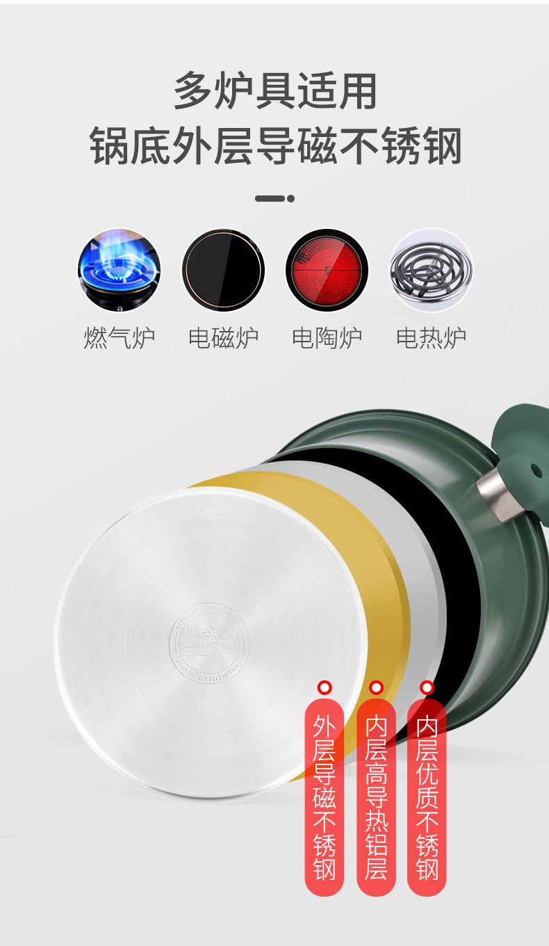 德国Debo德铂少烟不粘煎牛排煎蛋平底煎锅燃气灶适用26cm