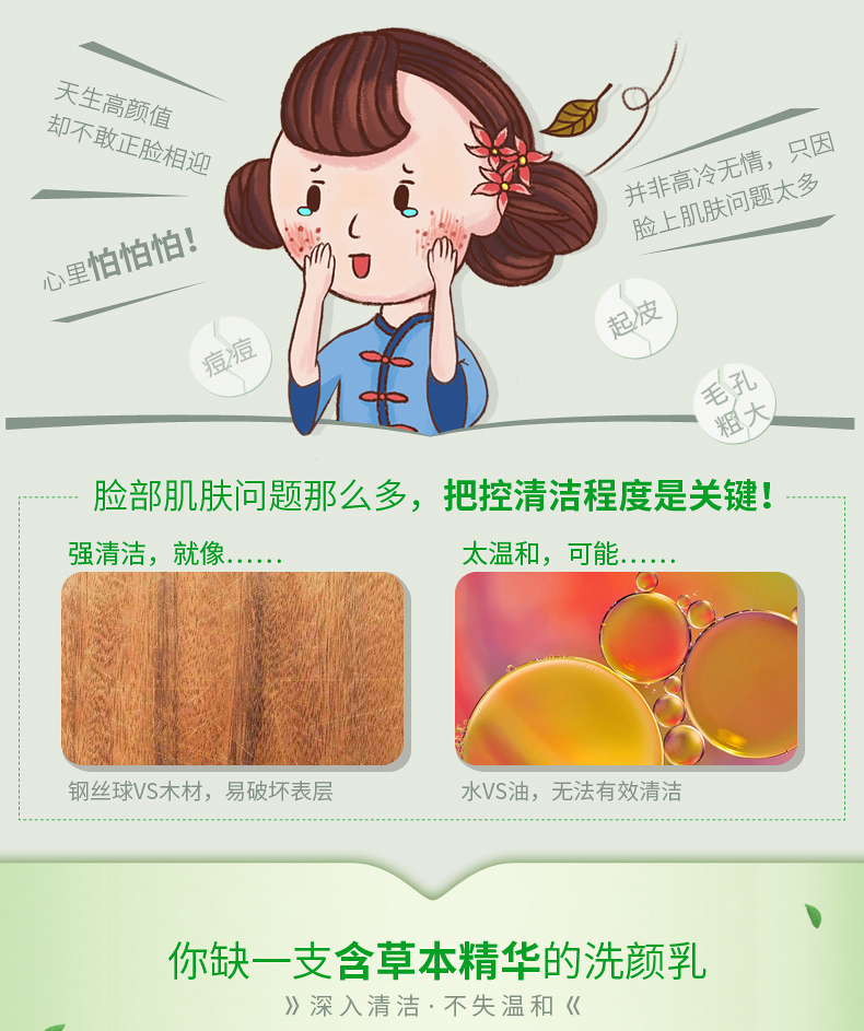 谷雨 氨基酸刷头洗面奶补水保湿控油深层清洁毛孔温和舒缓洁面泡沫