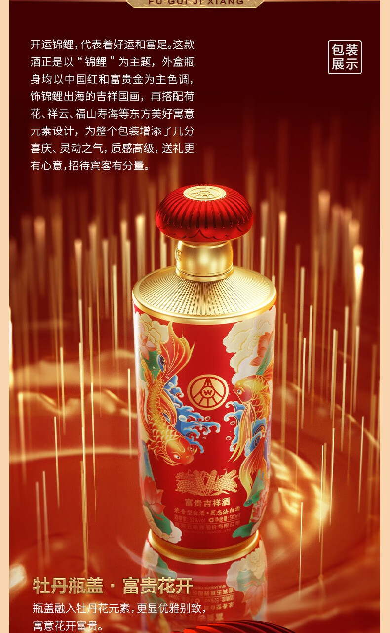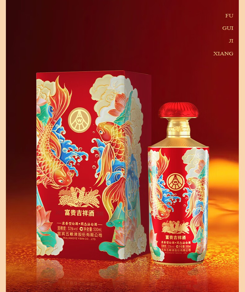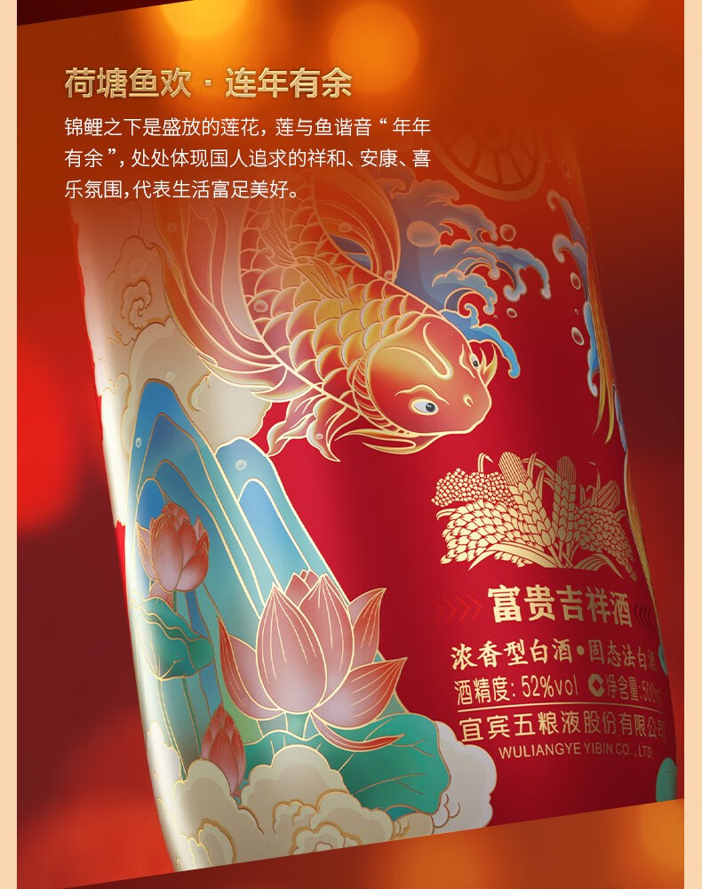 五粮液股份富贵吉祥锦鲤52度浓香型白酒500ml