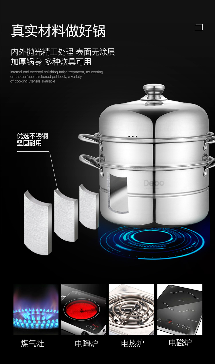 德国Debo德铂奥格斯堡蒸汤锅28cm不锈钢多功能明火电磁炉通用