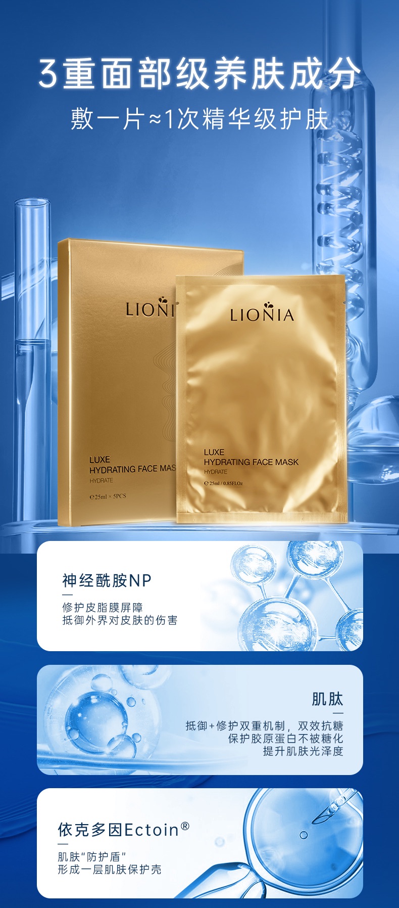 LIONIA/莲妮娜奢华海洋鱼子精华面膜25ml*5片【母亲节活动买三盒发四盒加送洗脸巾一袋】