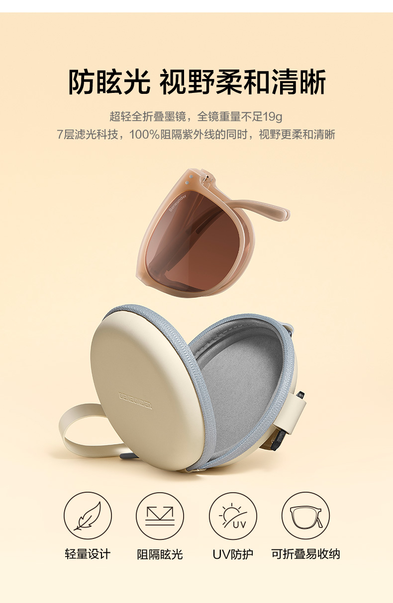 蕉下(beneunder)方形大框眼镜可折叠墨镜男女防紫外线太阳镜FO32724 新款2024