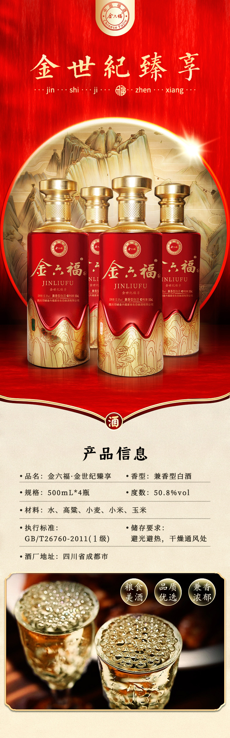金六福金世纪臻享50.8度兼香型白酒500ml*4瓶