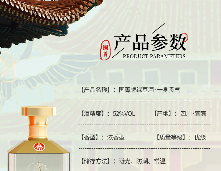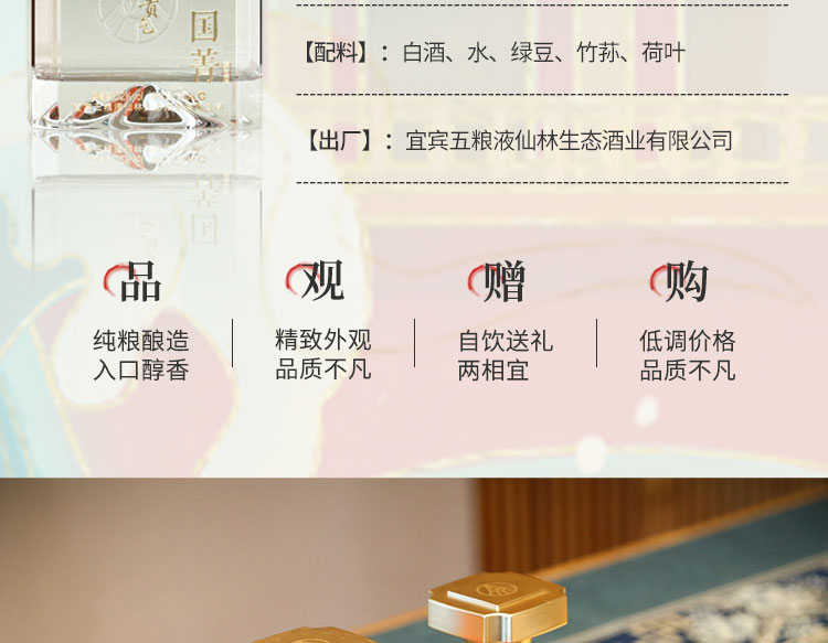 五粮液生态国菁一身贵气绿豆酒52度500ml*2瓶礼盒含礼袋