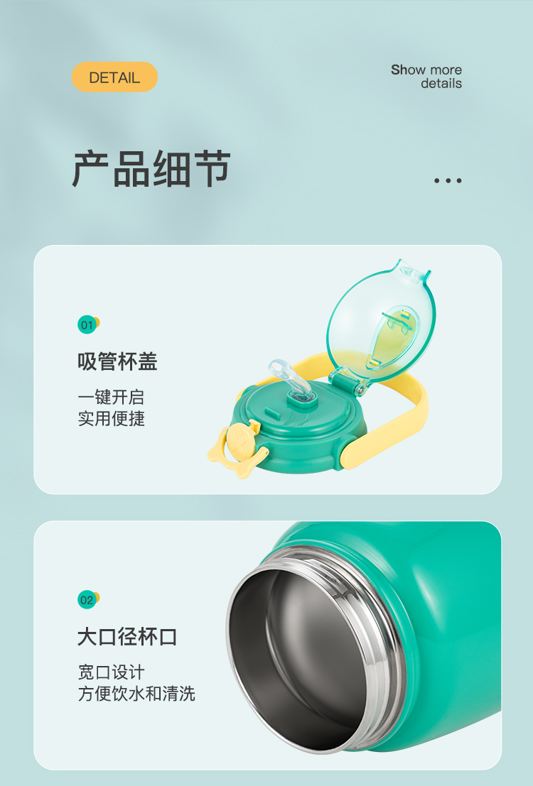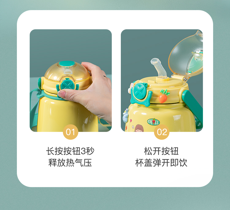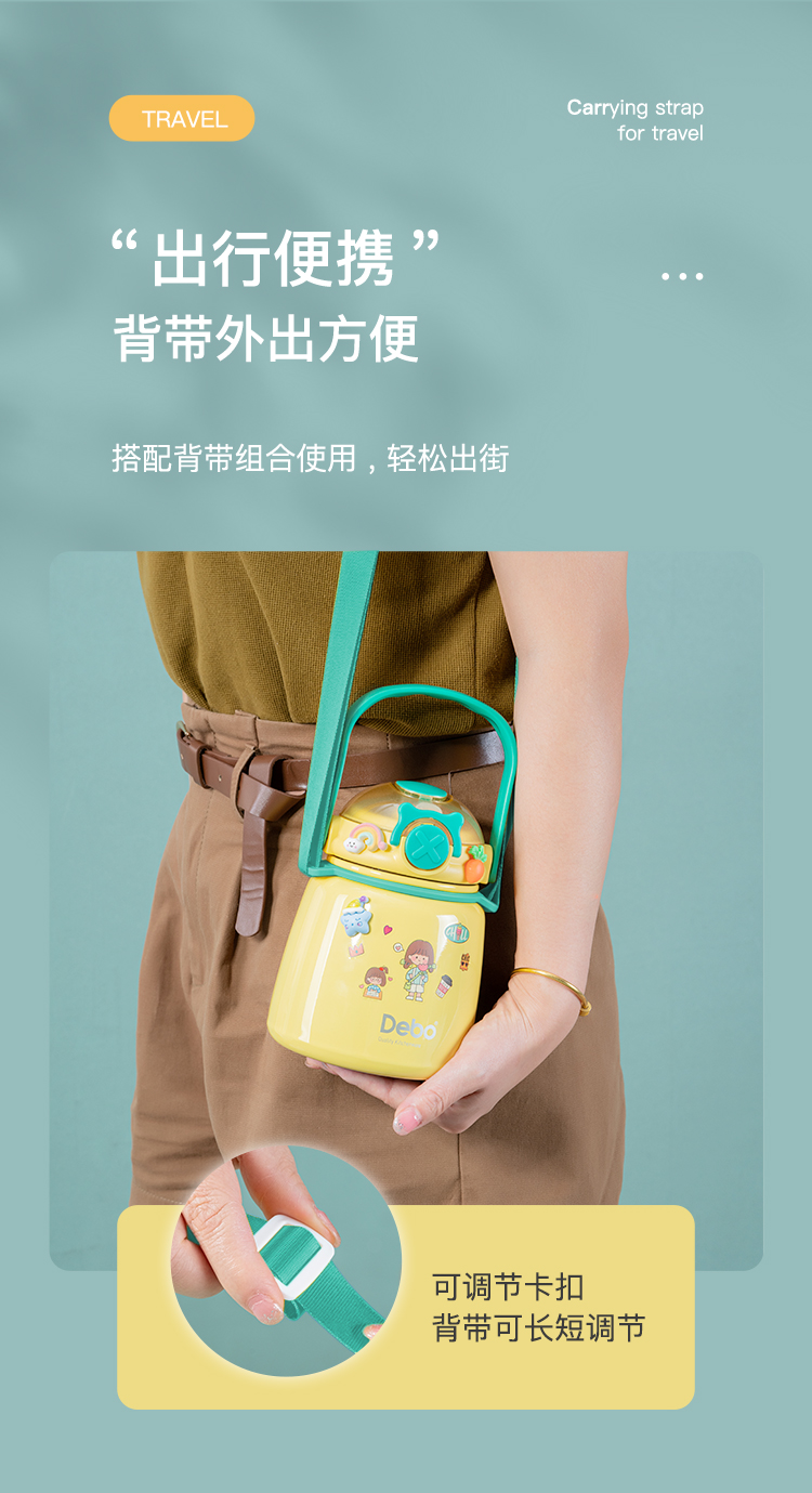 babycare恐龙冷萃杯儿童背带学饮杯霸王龙托比吸管水杯学生外出旅行大毫升500ml