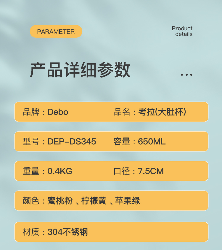 德国debo德铂保温杯男女大容量吸管杯304不锈钢网红大肚杯户外便携运动健身杯900ml