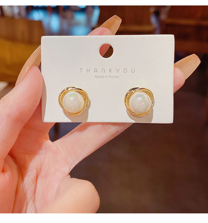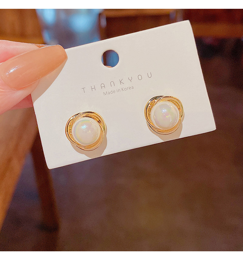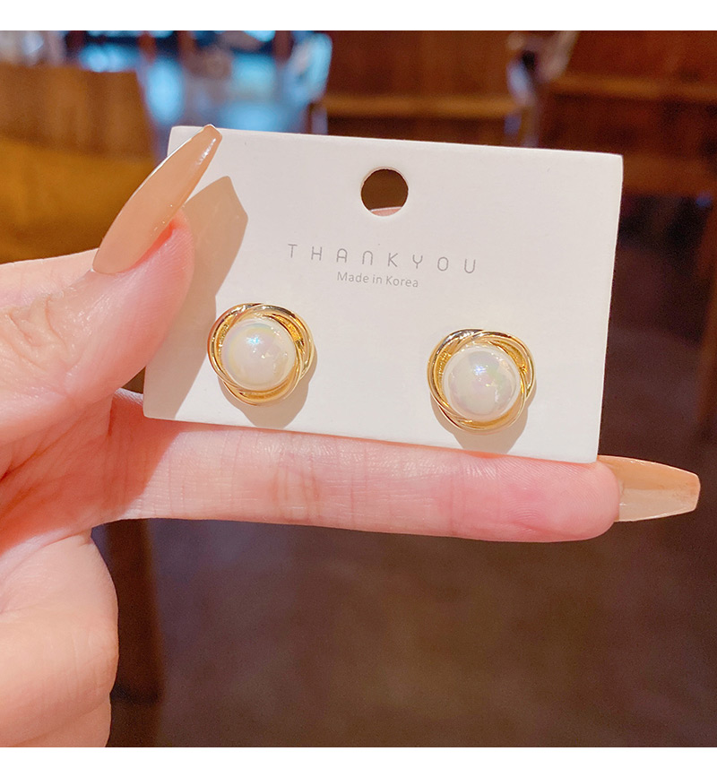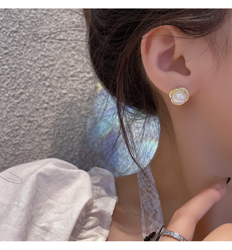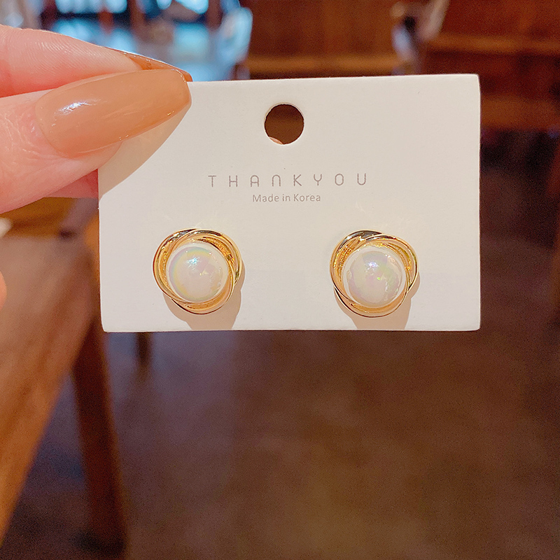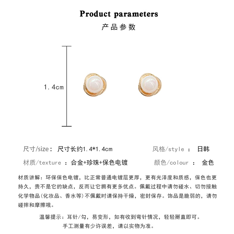 雅图小贝韩国新款人鱼色珍珠耳环女简约小众轻奢高级设计感耳钉E5058金色