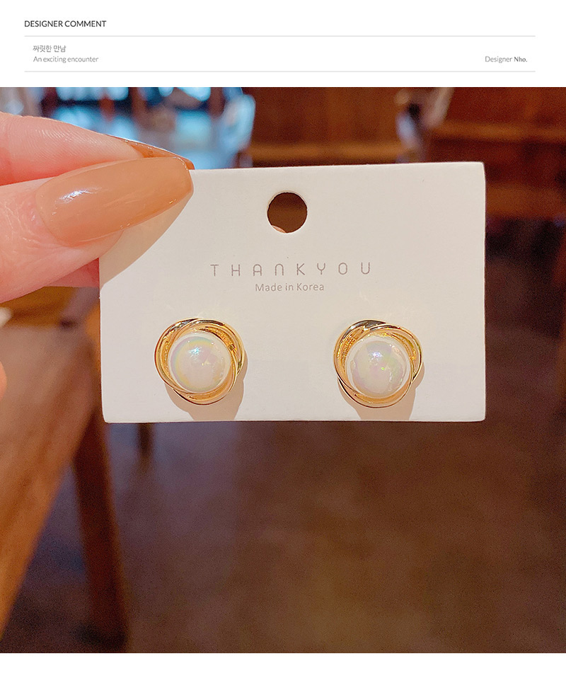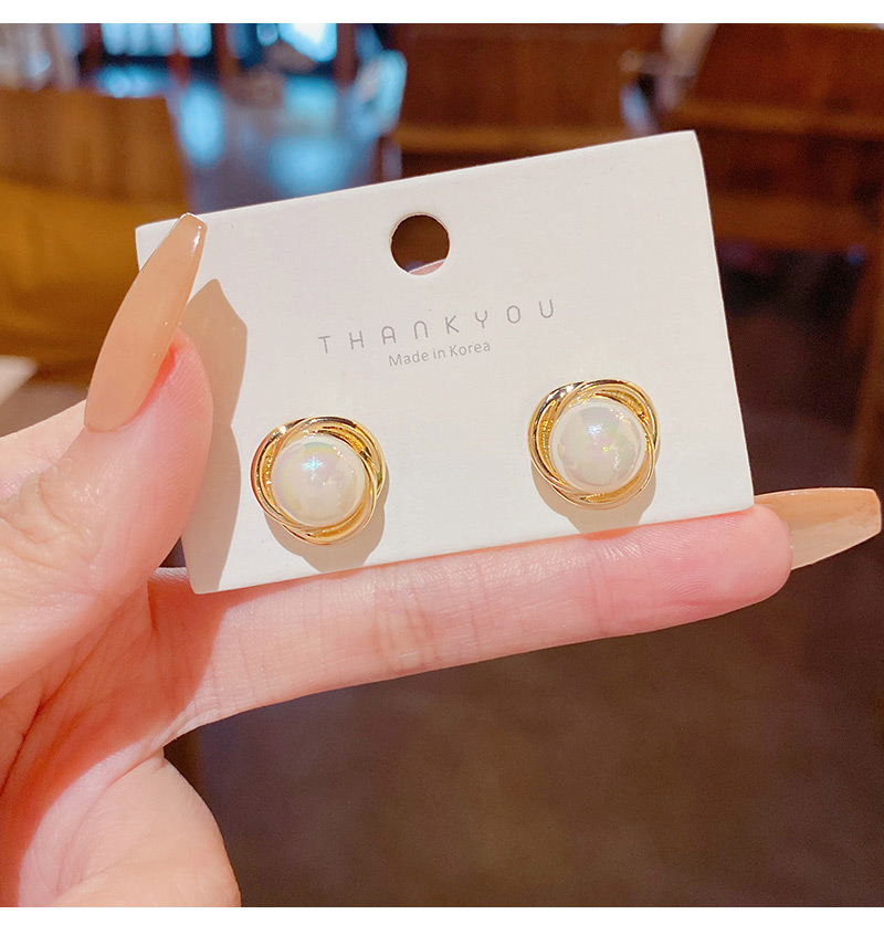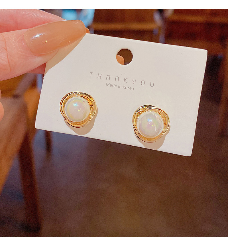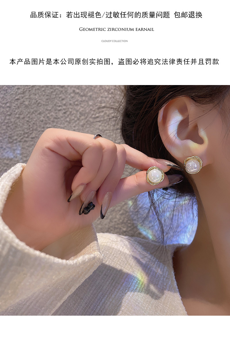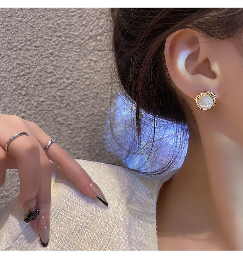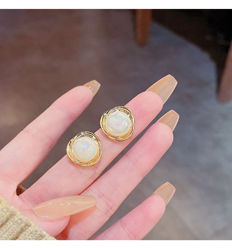 雅图小贝韩国新款人鱼色珍珠耳环女简约小众轻奢高级设计感耳钉E5058金色