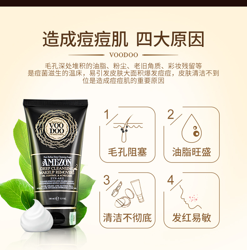 谷雨氨基酸洗面奶深层清洁毛孔洁面乳卸妆洁面二合一100g