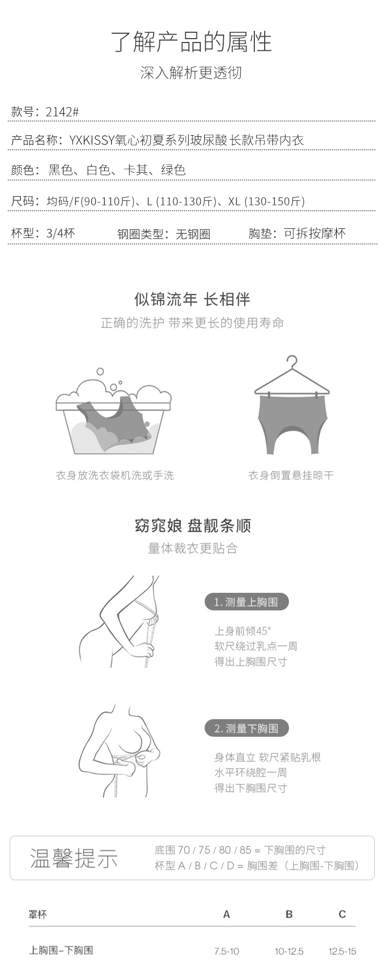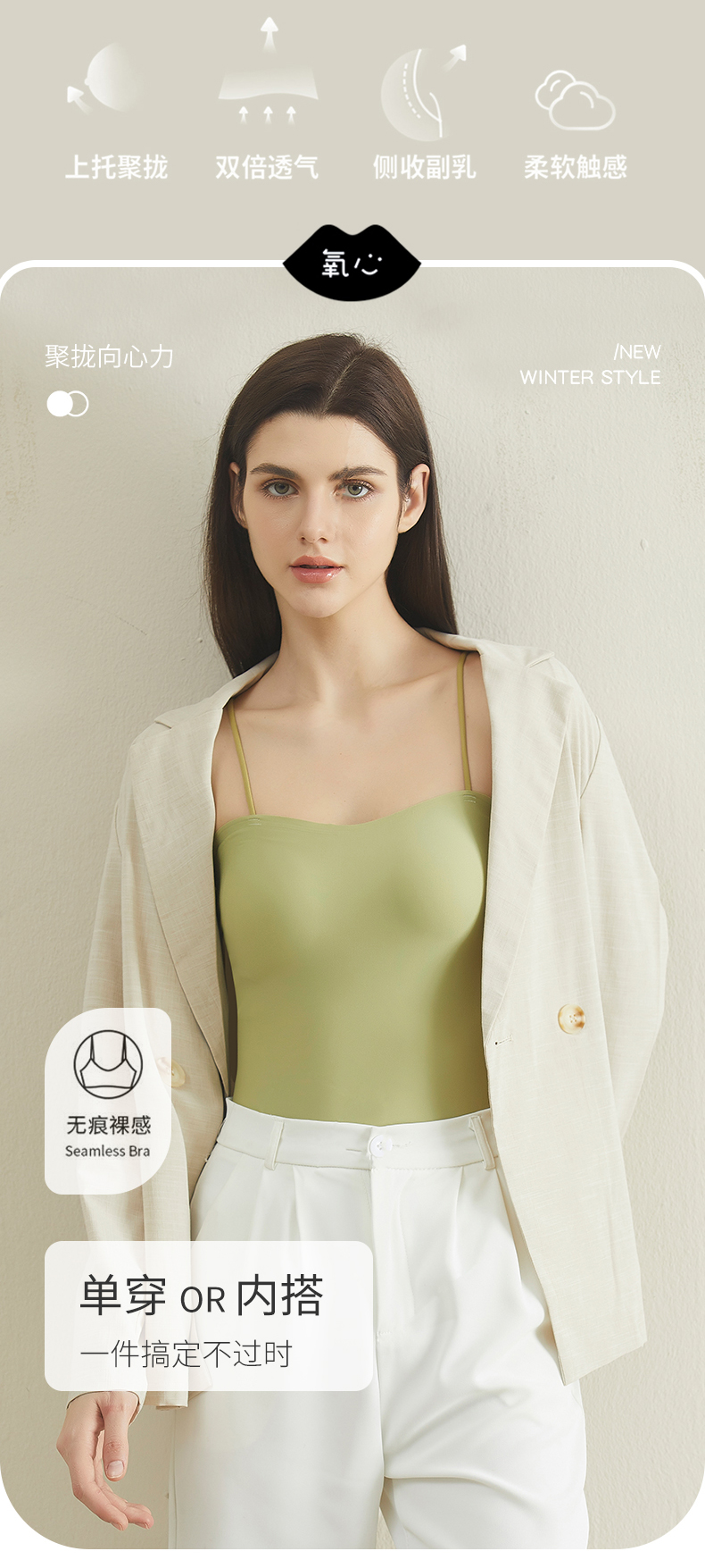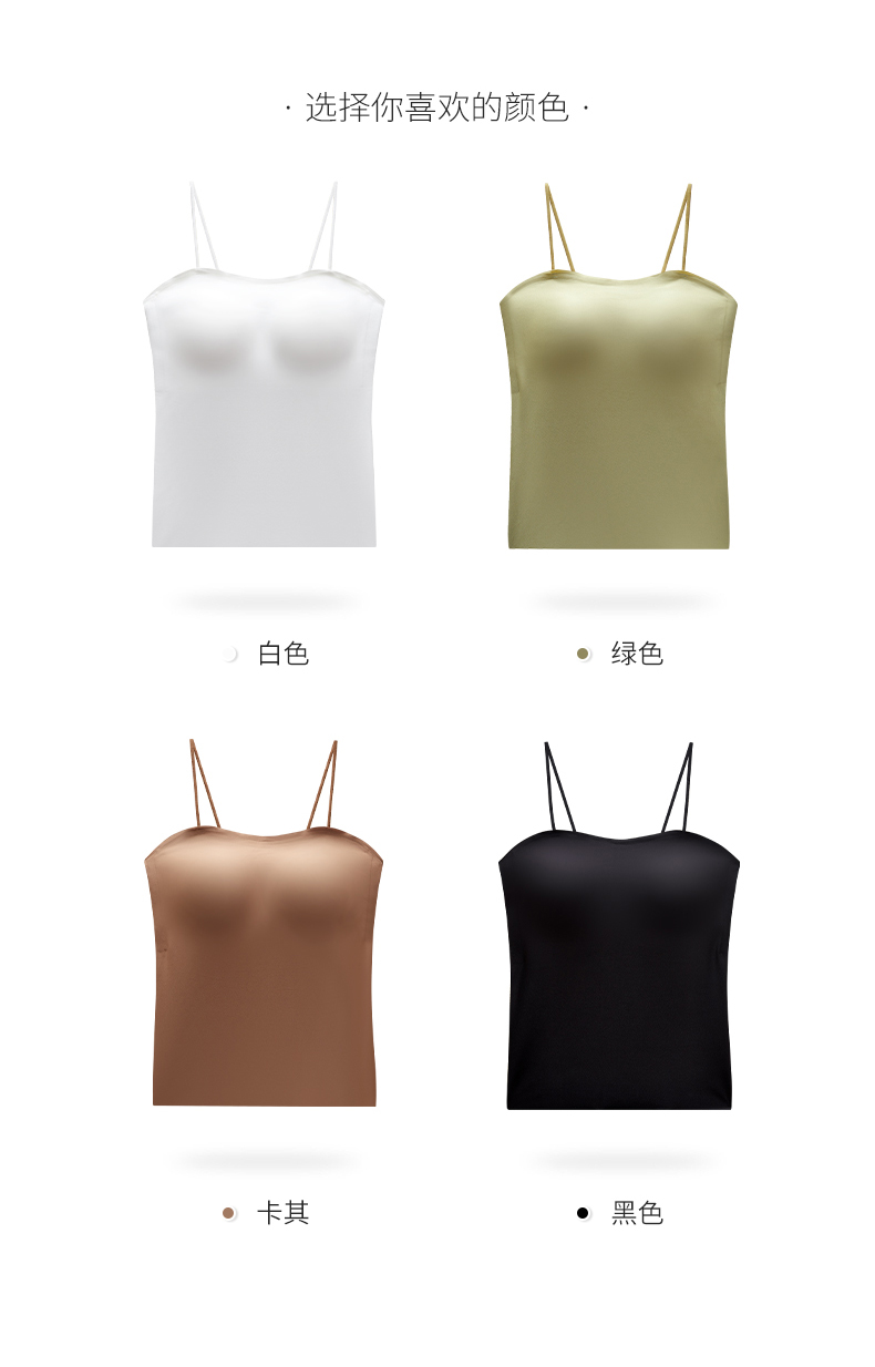 " 1.全新黑科技混合时髦——当面料遇上玻尿酸,在织物中添加添加“天然保湿因子”玻尿酸,能源源不断地给肌肤提供水分,改善营养代谢,保持良好弹性,促进肌肤健康,予肌肤温柔守护,手感亲肤细腻,弹性大,能够包容不同的身形,上身舒适无痕,亲肤不闷热; 2.长款版型,是肚子有肉宝宝的最佳选择,上身收腰显胸大,自然修饰身材比例,很好的勾勒出身形曲线,一字美背简洁干练,勾勒性感美背,轻巧百搭,时髦度、显瘦度、气质度、实穿度都是满分,既舒适又好搭的背心,让你上身就舍不得脱掉~ 3.自带胸垫二合一设计,贴心又方便,连杯设计,3D天然亲肌棉杯垫,上薄下厚,吸湿透气不闷热,舒适承托起胸部的同时也能做到大胸托得稳,小胸不空杯;可拆卸式设计,自由拆卸,方便清洗的同时又不易滋生细菌 4.橡筋肩带,弹力好,舒适不紧绷,一字领领型,能够有效勾勒出肩颈线条,突出精致锁骨,平衡头身比列,加重视觉纤瘦感,可以有效遮副乳,凸显直角肩,简约立体的剪裁贴合身形,舒适无负担,经典不会过时的版型,可以搭配任何外套开衫或者直接外穿,是每个女生衣橱里不能错过的单品,是一年四季都能穿的必囤款,每一季也都能搭配出新时尚新花样~ "