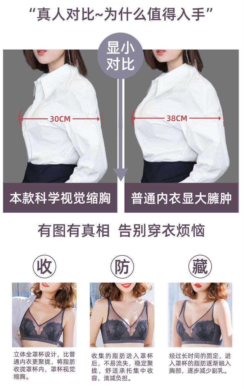 铭扬袋鼠王胸罩女聚拢小胸无钢圈文胸调整型收副乳上托加厚乳胶内衣文胸
