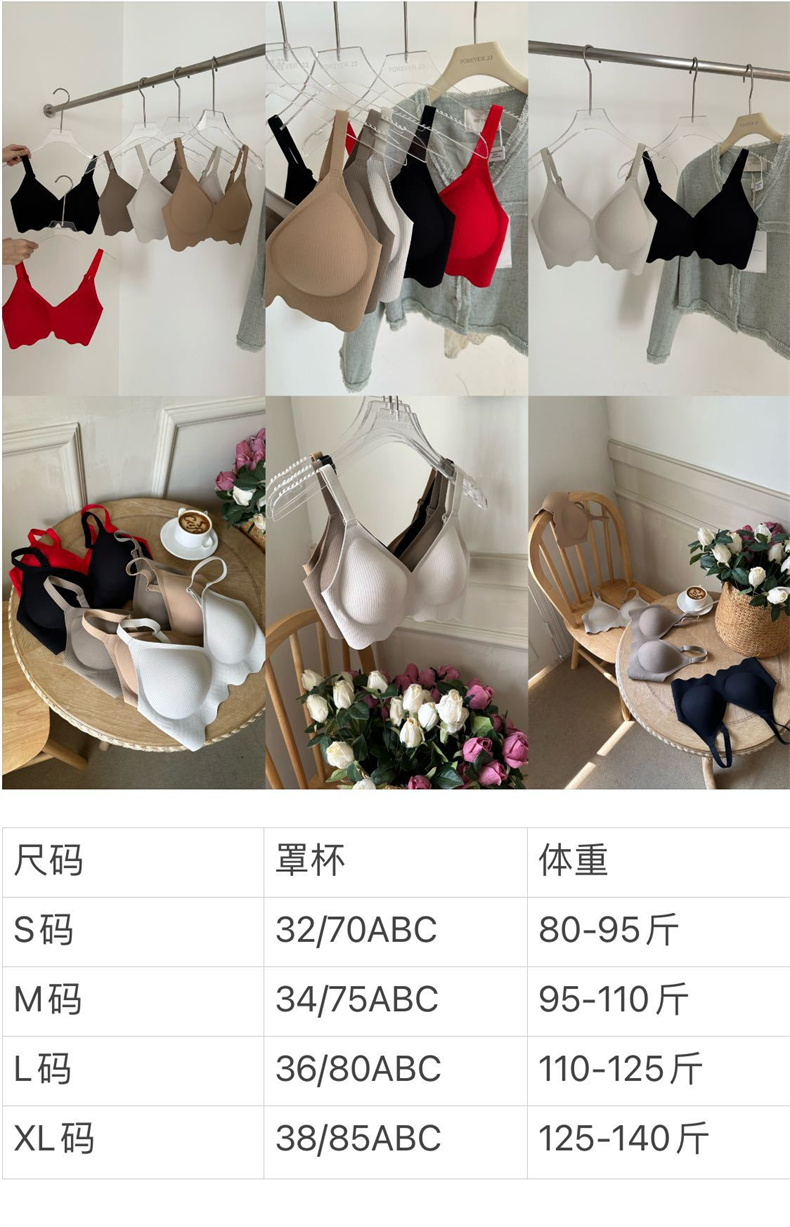 阳阳花夏季超薄冰丝无痕内衣女薄款透气一片式美背背心大胸显小睡眠文胸成人少女文胸