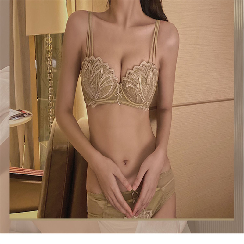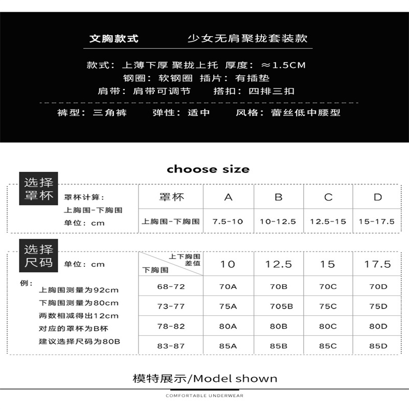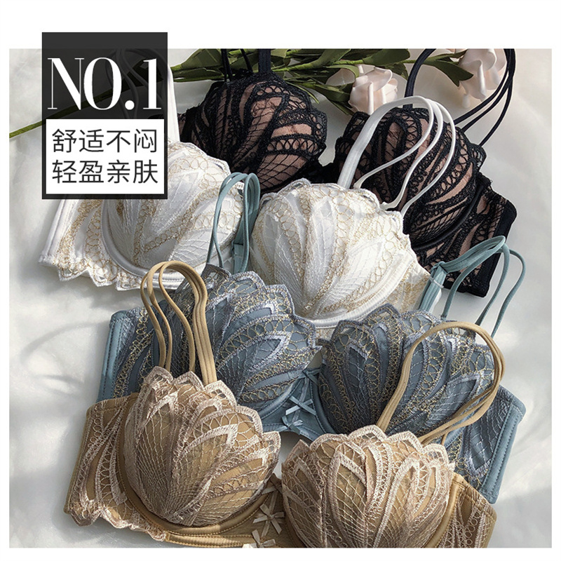 麓姿曼上薄下厚无钢圈少女文胸夏季吊带美背内衣女士欧美东南亚前扣胸罩套装