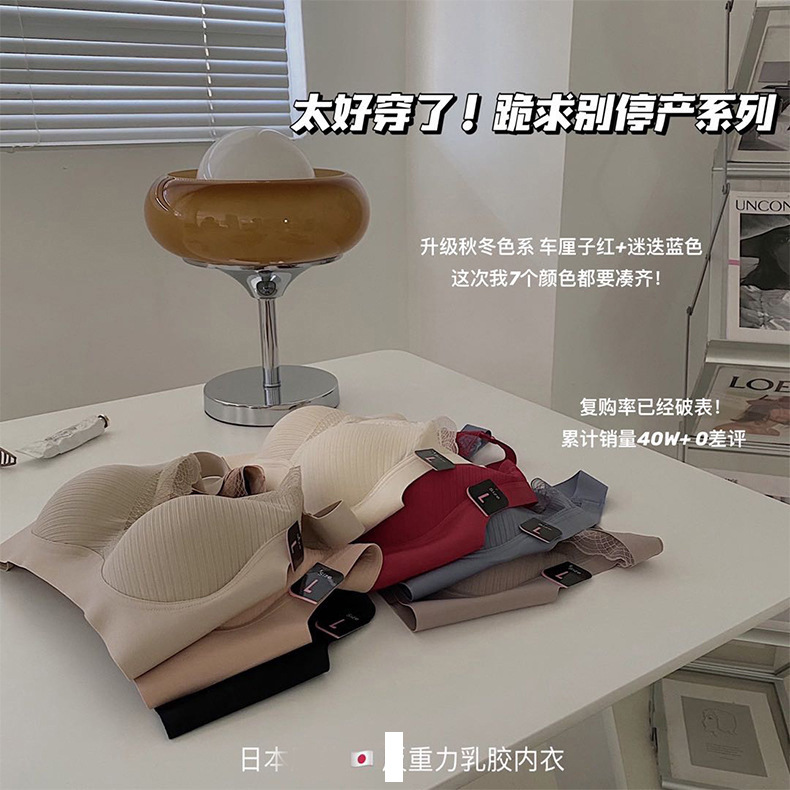 阳阳花夏季超薄冰丝无痕内衣女薄款透气一片式美背背心大胸显小睡眠文胸成人少女文胸