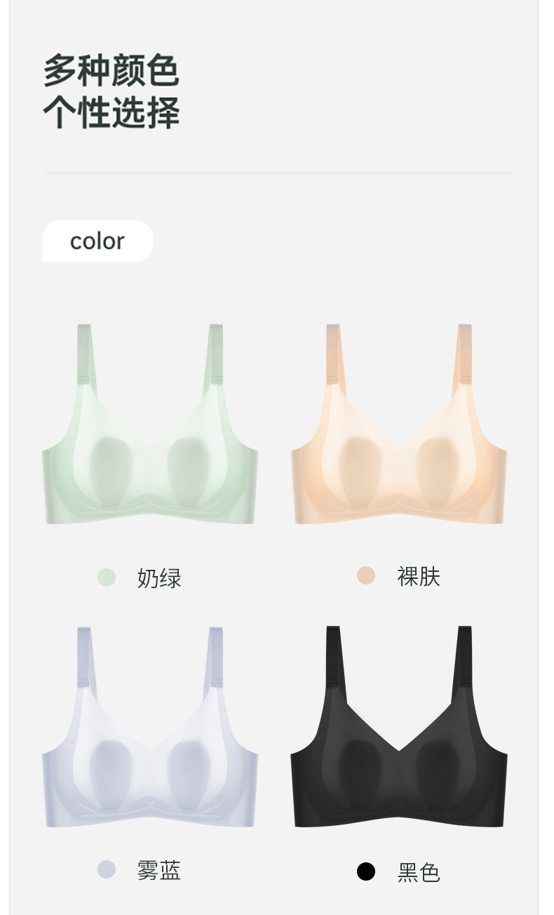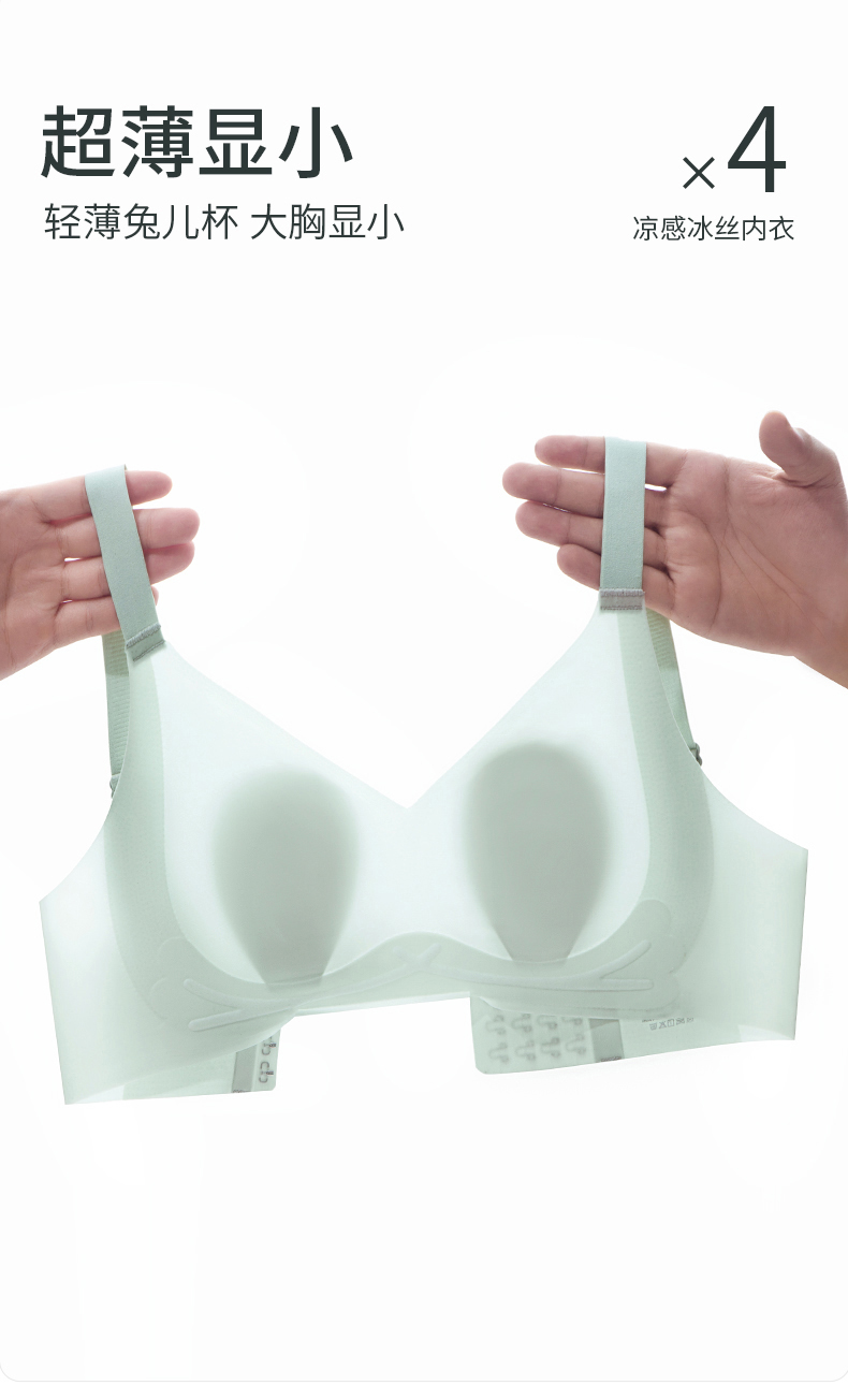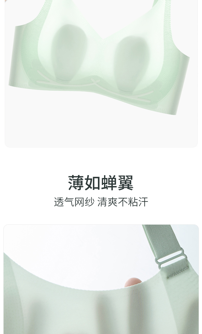 阳阳花夏季超薄冰丝无痕内衣女薄款透气一片式美背背心大胸显小睡眠文胸成人少女文胸