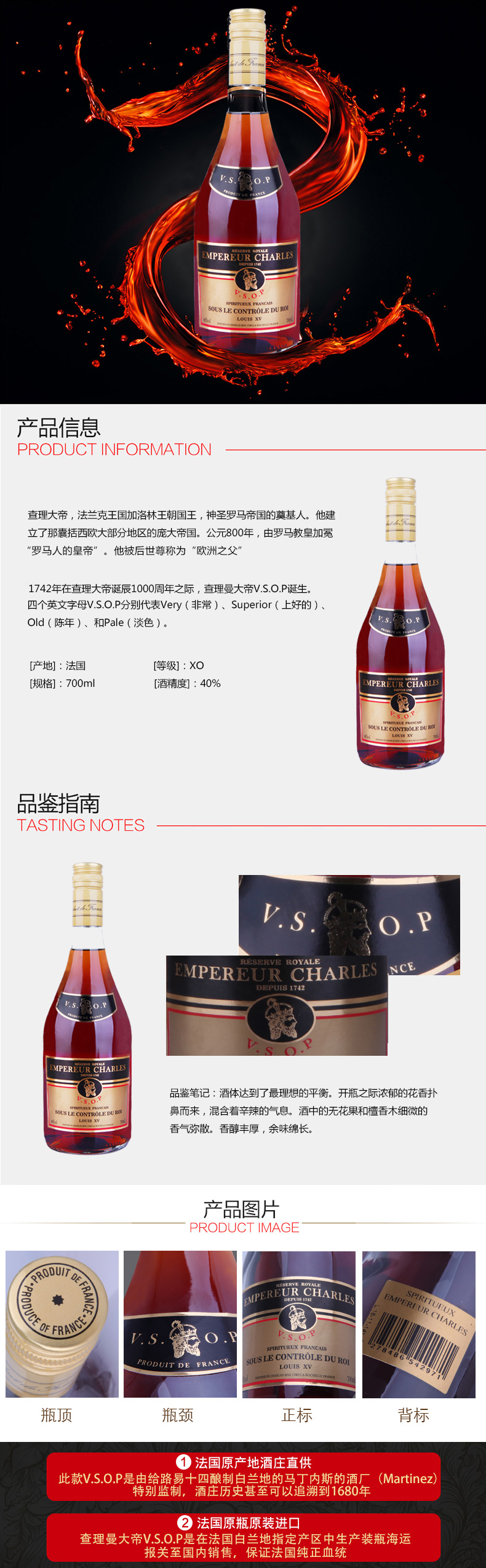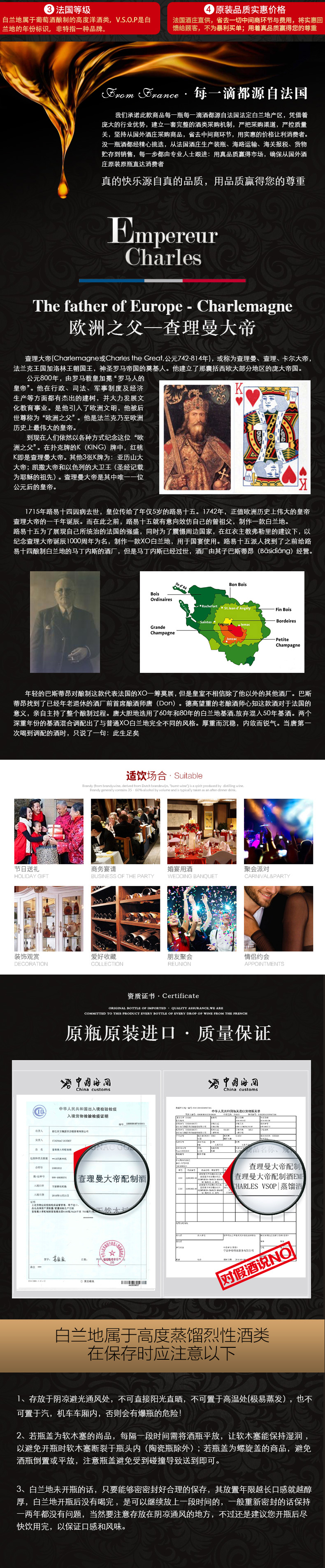 查理曼 法国干邑产区原瓶进口 VSOP白兰地 700ml/瓶(裸瓶无盒)