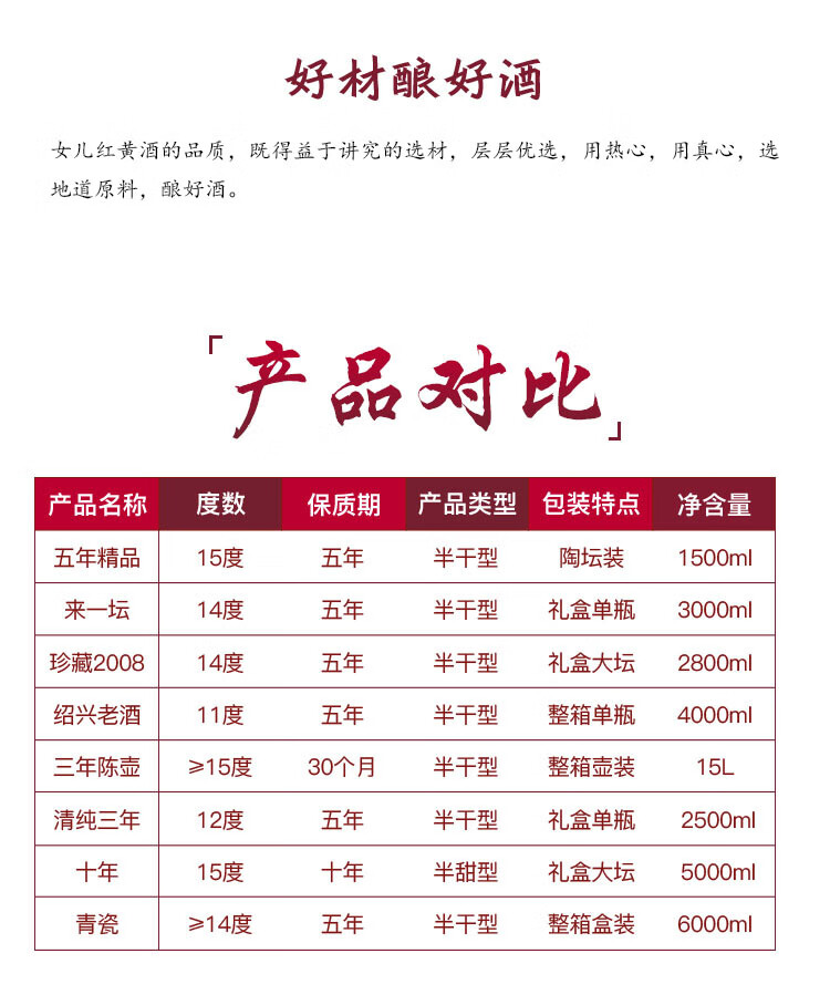 女兒红 珍藏精品 传统型半干 绍兴 黄酒 2.8L 单坛装