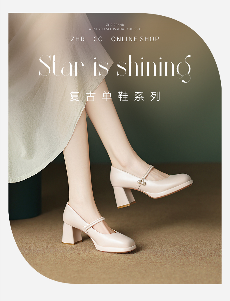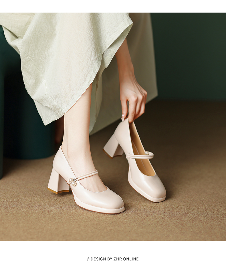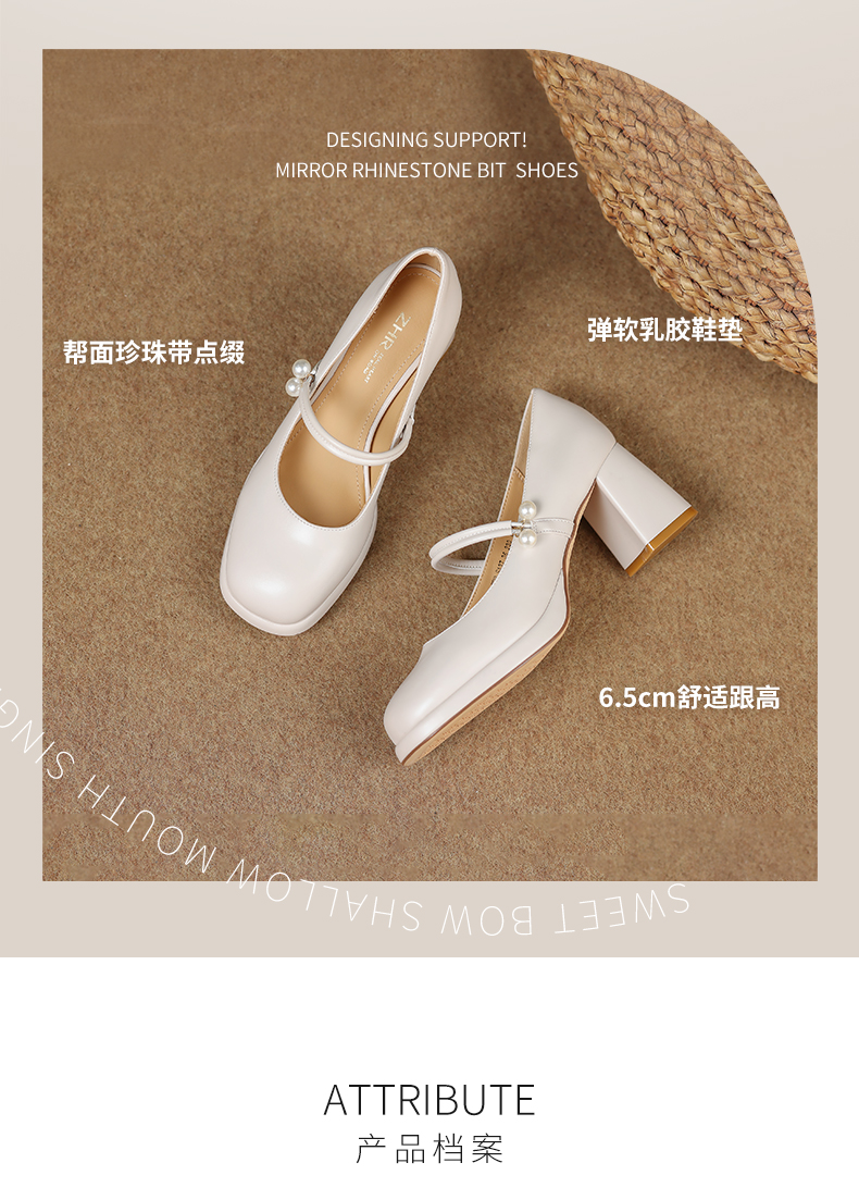 ZHR则则甜美小香风单鞋女气质玛丽珍鞋小皮鞋女鞋百搭一字扣休闲女鞋EHSA37
