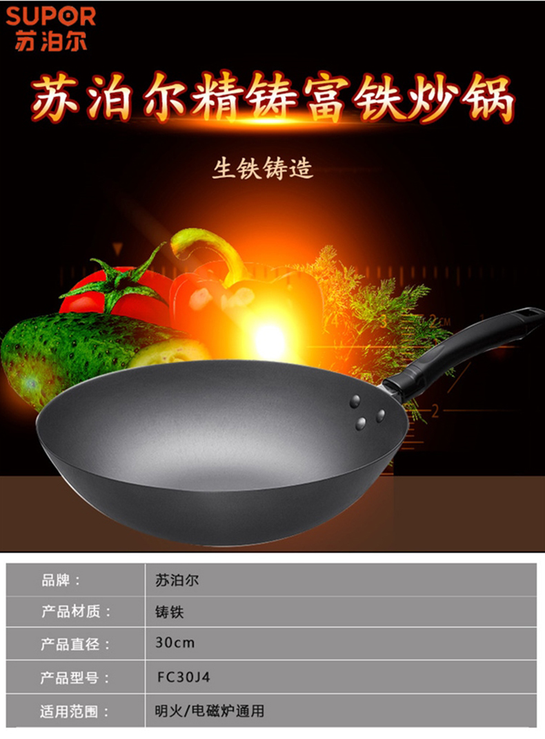 苏泊尔(SUPOR)铸铁炒锅VC32JF01 直径32cm炒锅