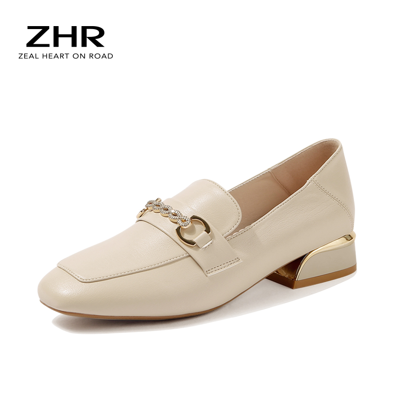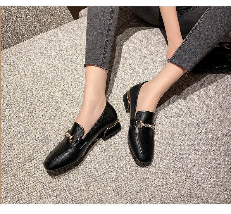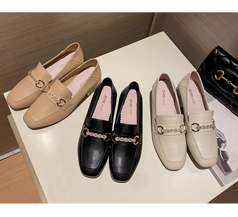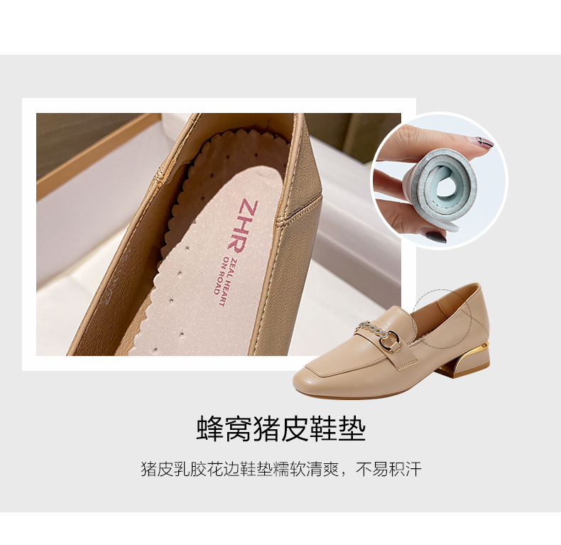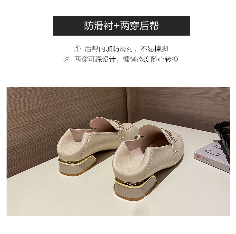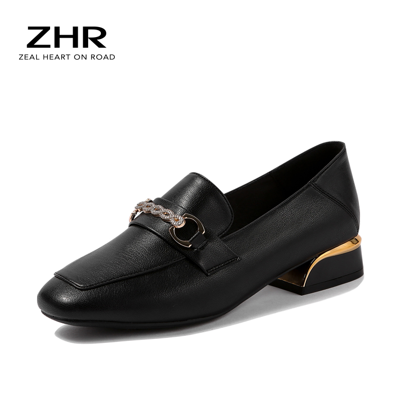 ZHR新款方头中跟单鞋女软底粗跟英伦一脚蹬小皮鞋女鞋成人皮鞋