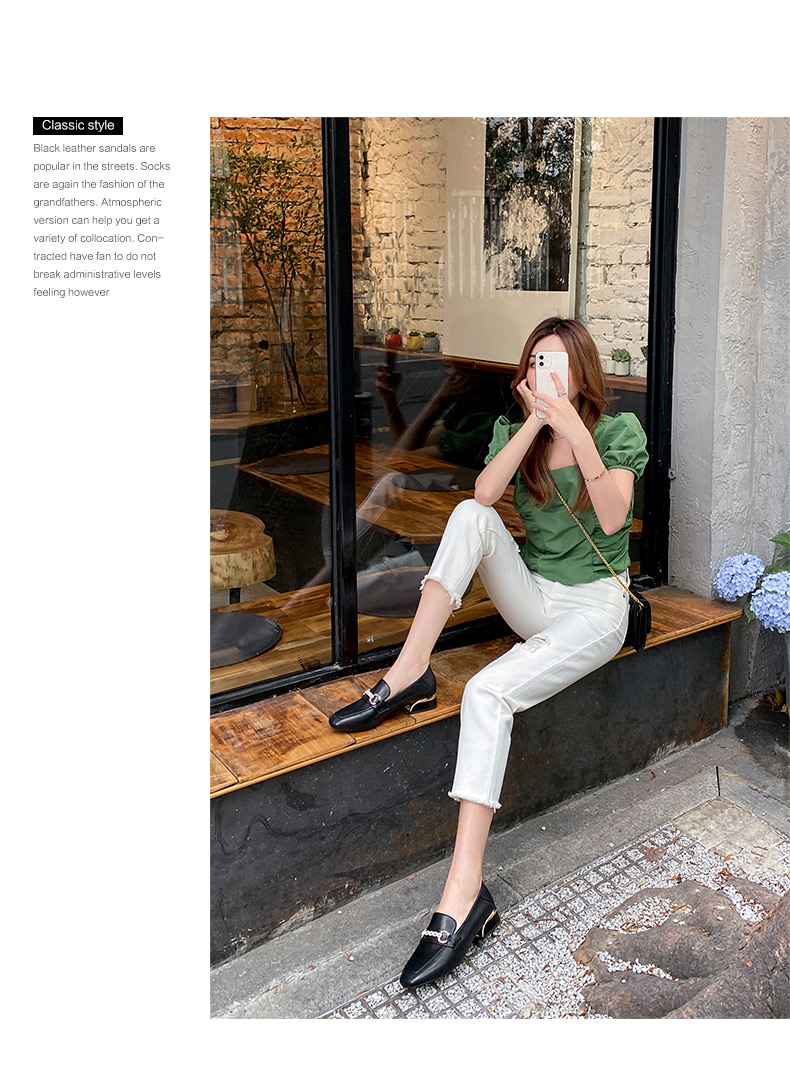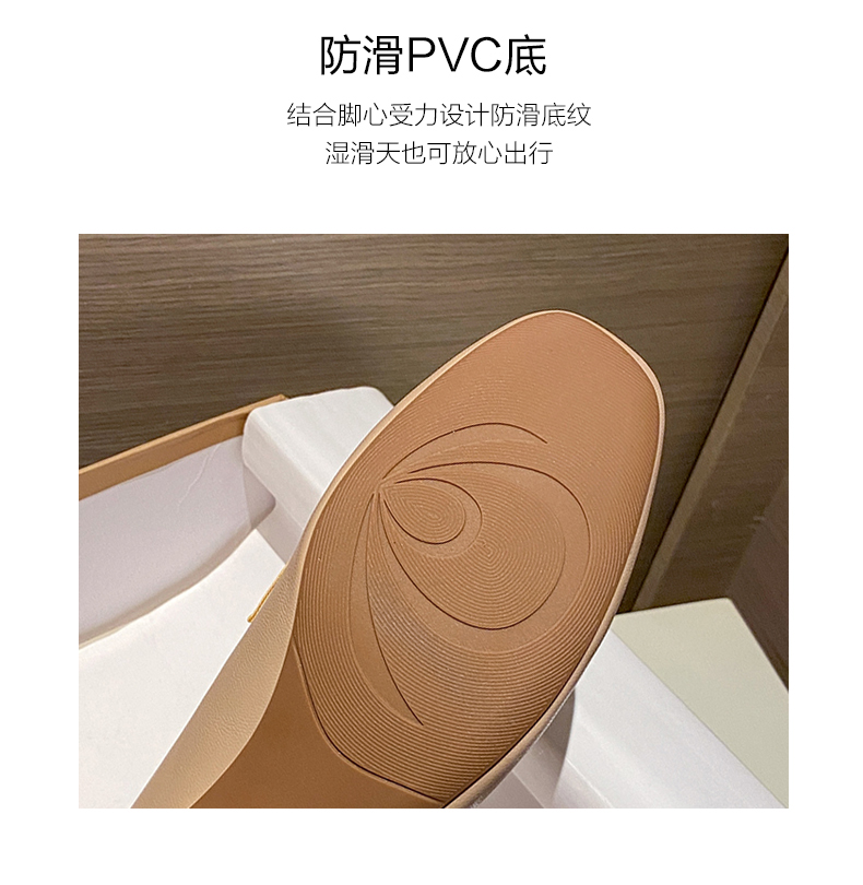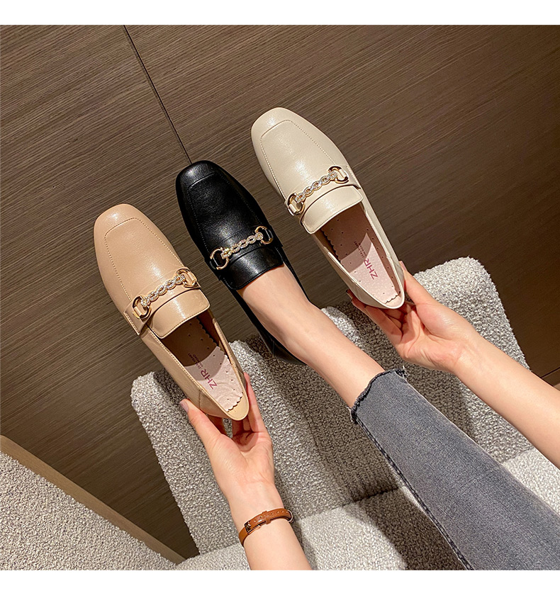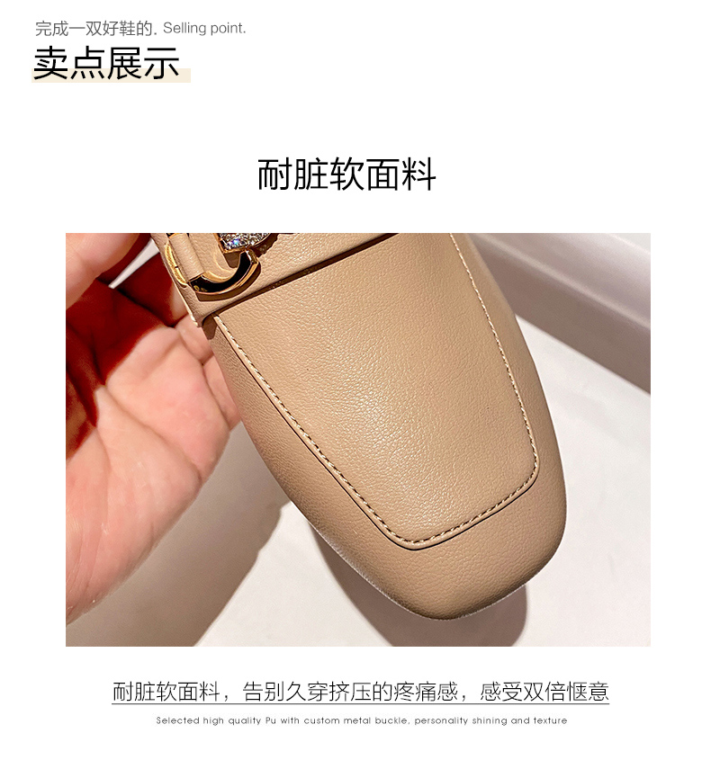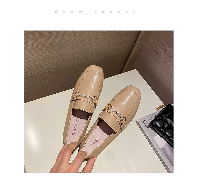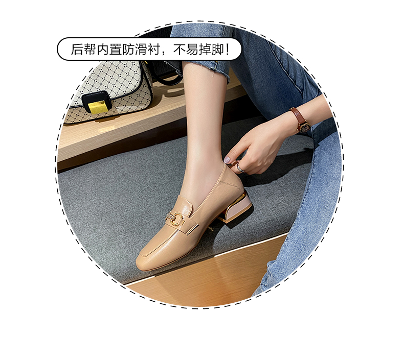 ZHR新款方头中跟单鞋女软底粗跟英伦一脚蹬小皮鞋女鞋成人皮鞋