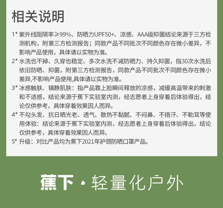 自2013年推出第一把小黑伞后,蕉下依托轻量化防护科技的创新研发与可持续复用能力,不断为大众提供覆盖一公里生活圈、城市户外、城郊户外与山野户外等多场景应用的四季轻量化户外产品,囊括服饰、伞具、配饰、鞋履、内物、用具/日化等品类,覆盖女性、儿童、男性全人群。