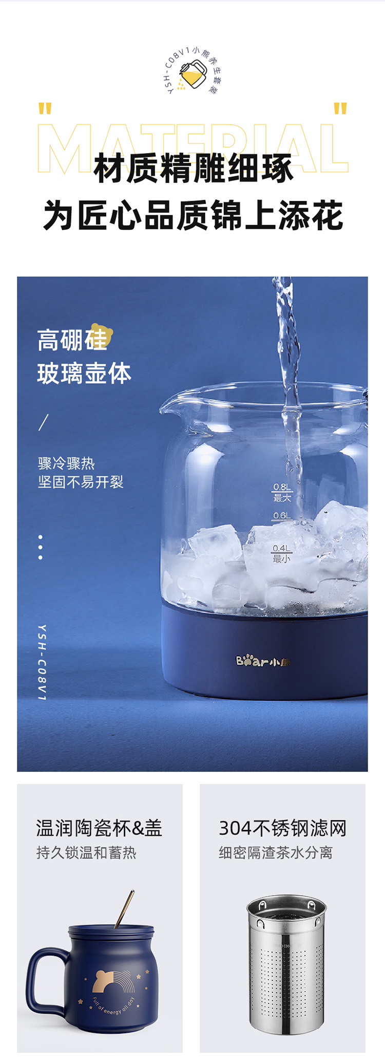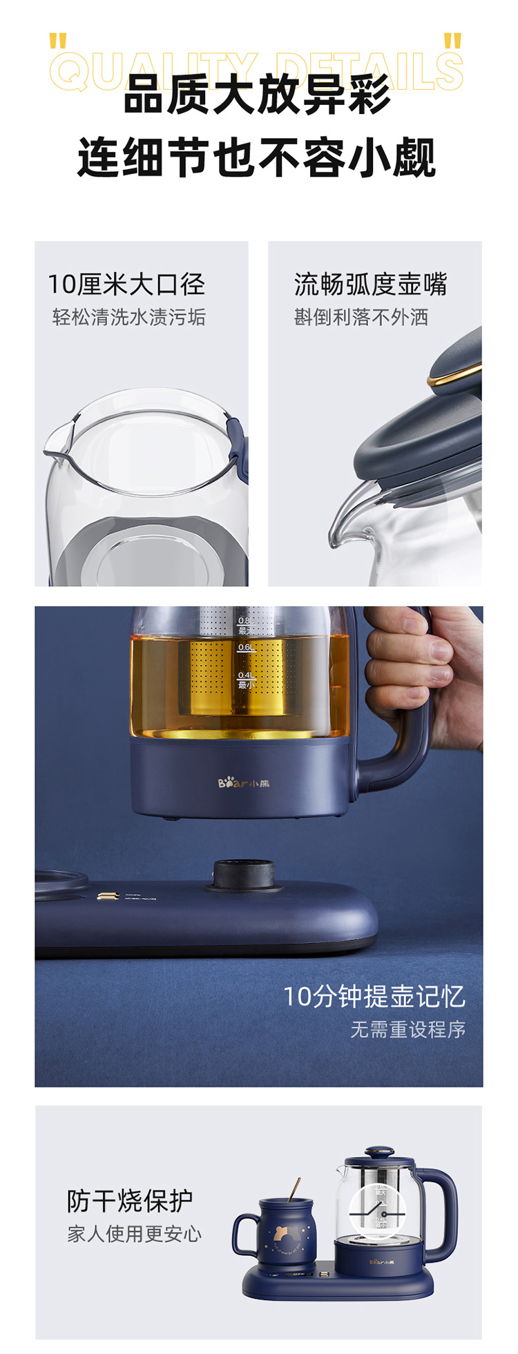 小熊(Bear) 养生壶煮茶器电水壶烧水壶1.5L触屏玻璃花茶壶带茶漏蛋架暖奶器 YSH-A15Z8
