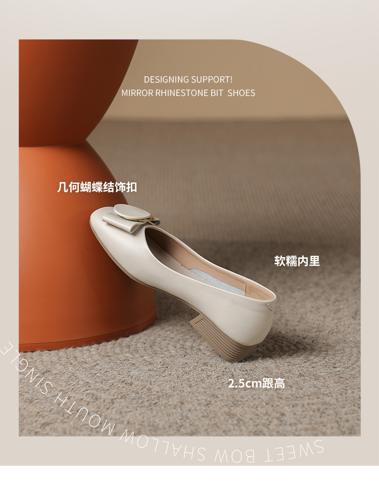 【ZHR】舒适单鞋几何饰扣一脚蹬气质圆头平底浅口单韩版休闲女鞋AH306