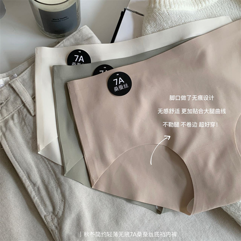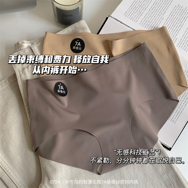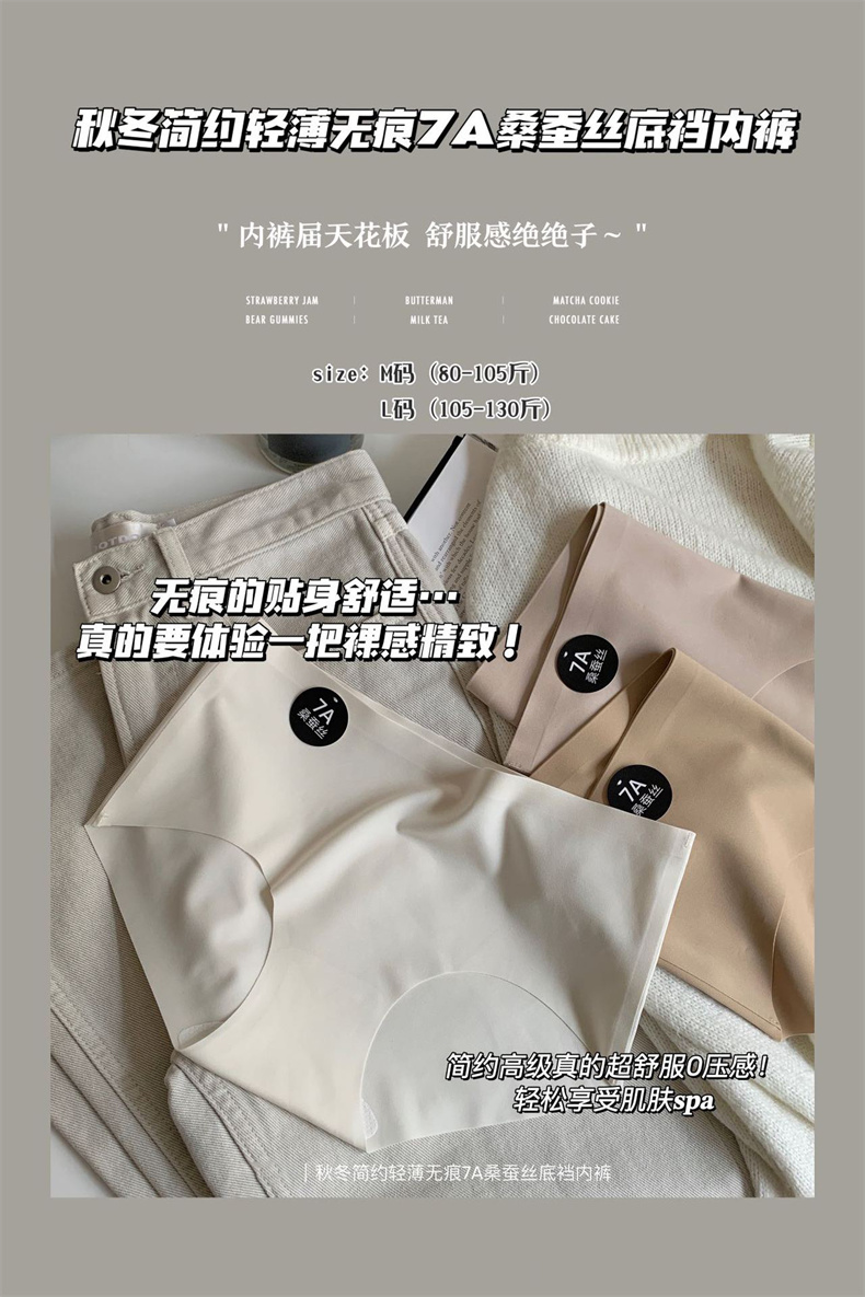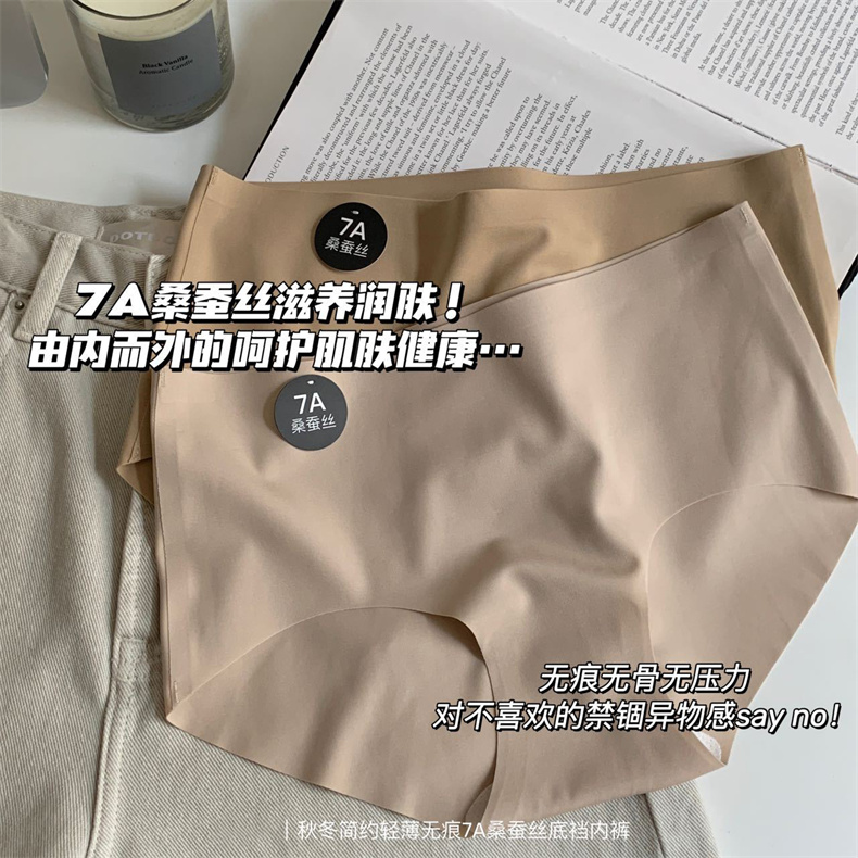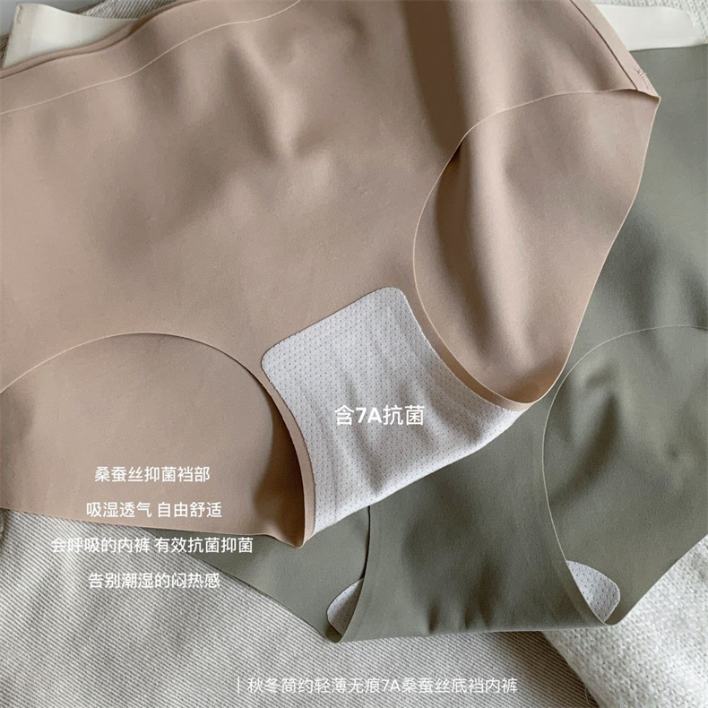 【5条装】万倩秋冬一片式无痕女士内裤7A桑蚕丝抗菌裆高弹中腰包臀三角内裤