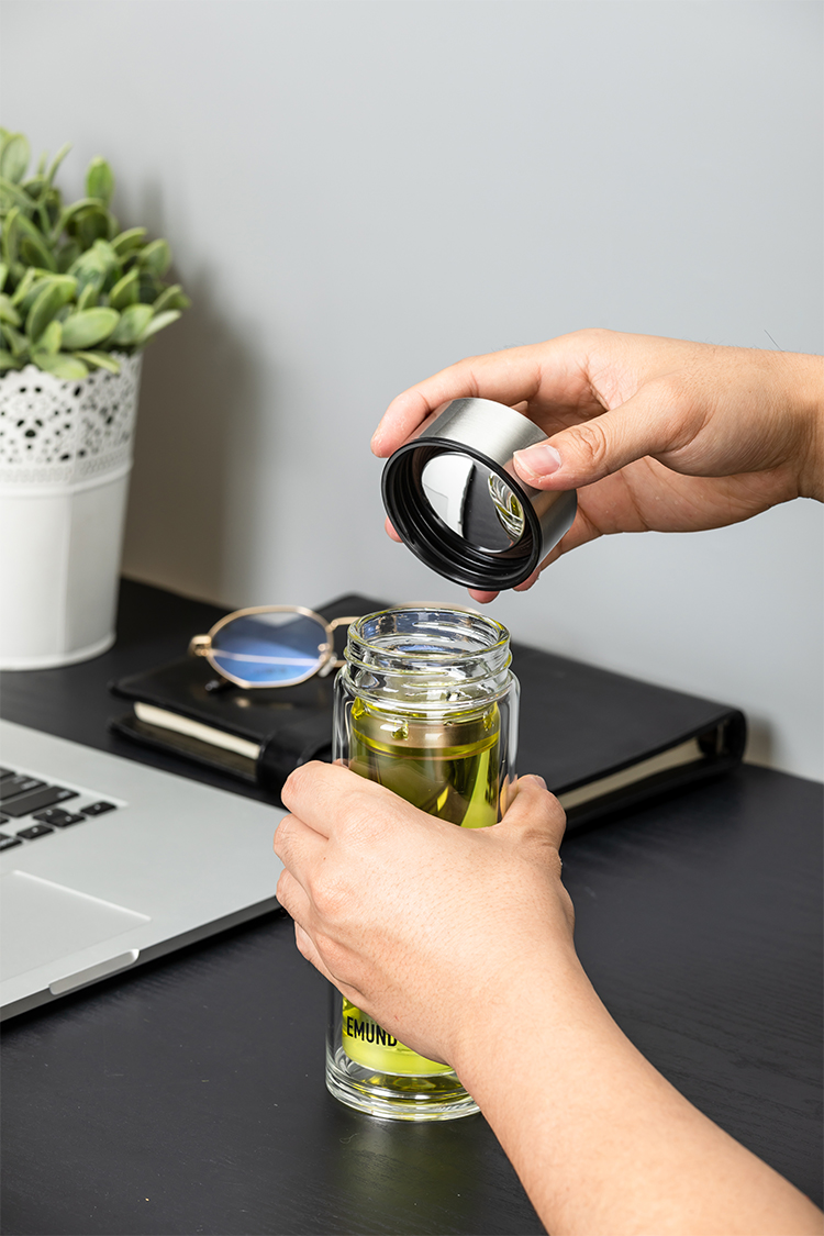 艾姆德 德隆双层茶水分离杯300+150ml商务办公泡茶杯子
