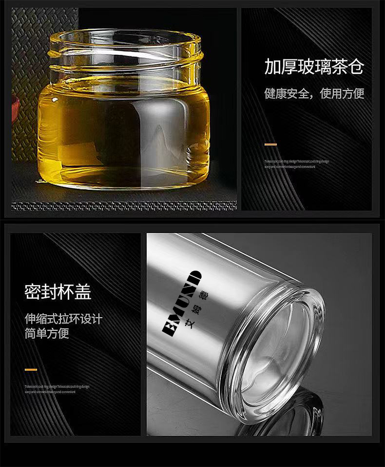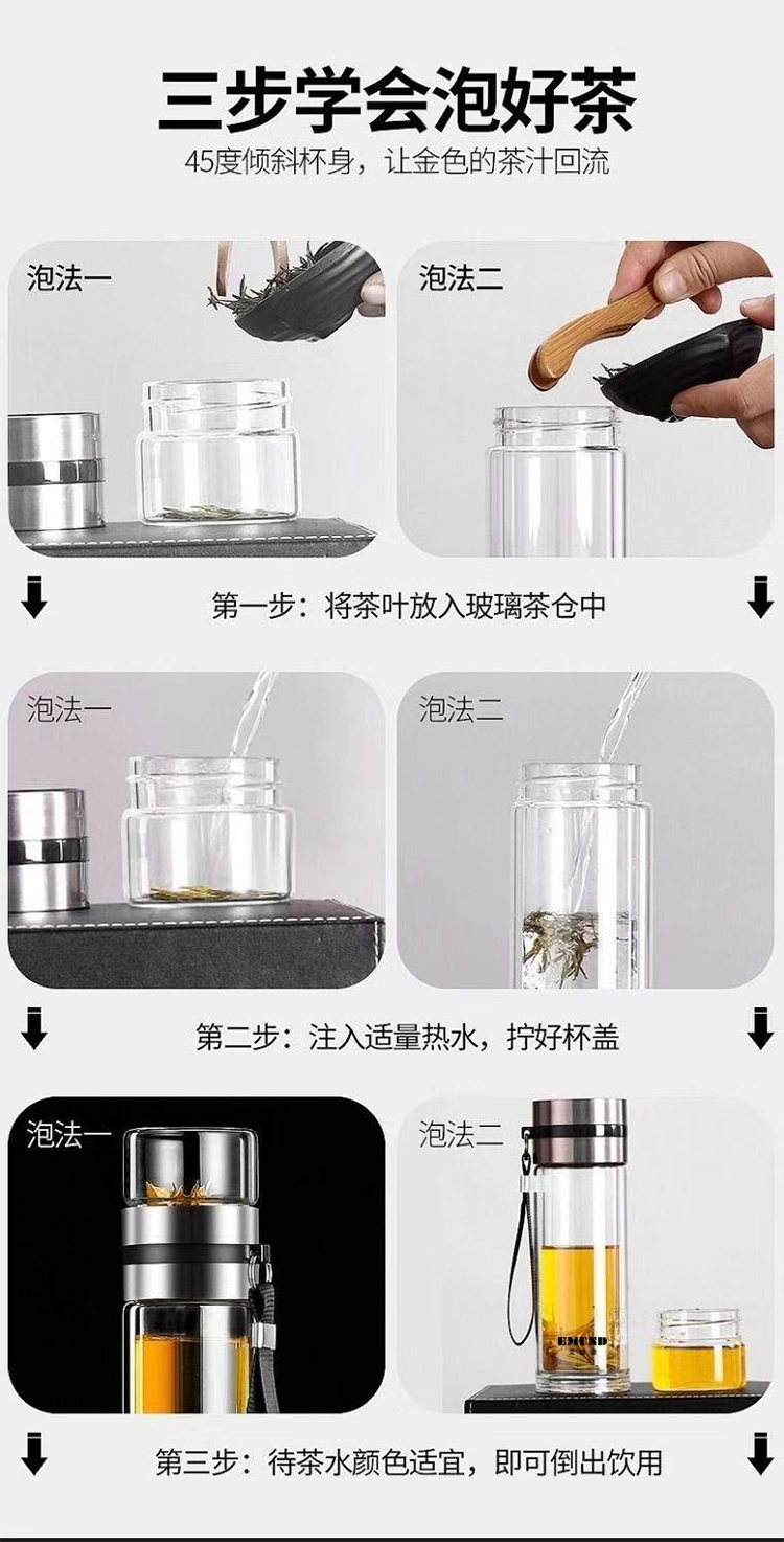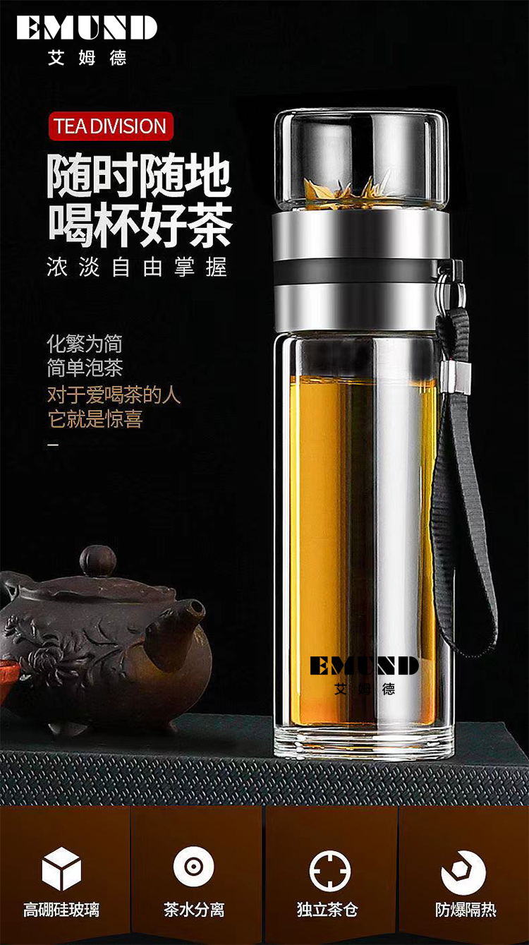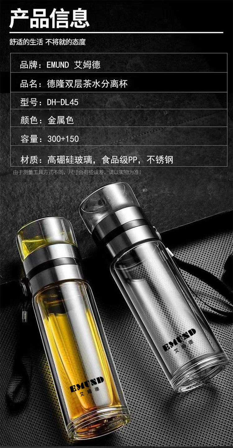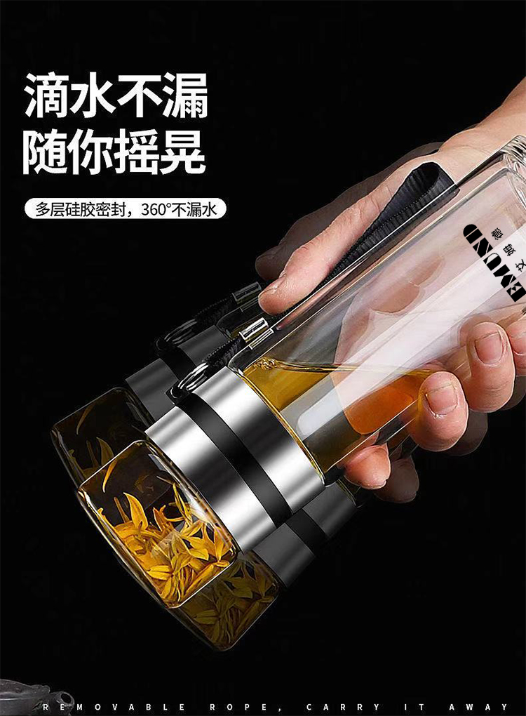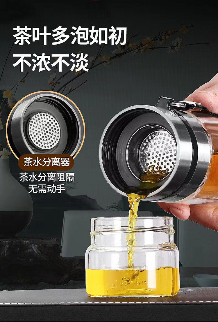 德国Debo德铂特尔斯茶水分离双层玻璃杯泡茶师过滤男女式旅行茶杯办公水杯