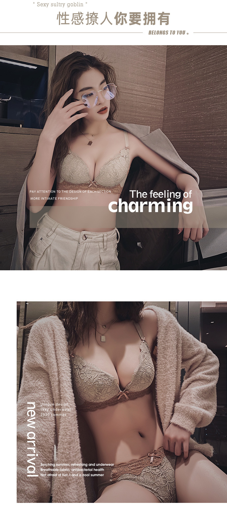 麓姿曼上薄下厚无钢圈少女文胸夏季吊带美背内衣女士欧美东南亚前扣胸罩套装