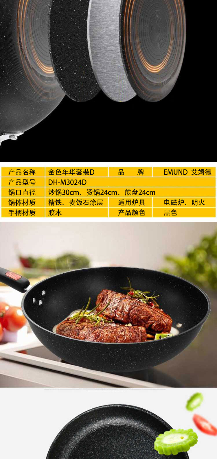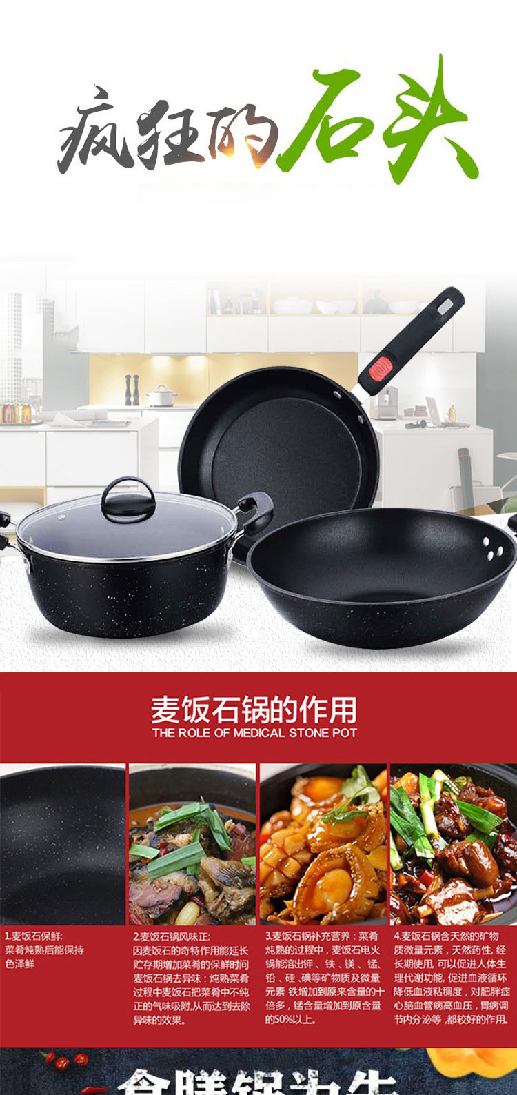 德铂乐克尔Lecker幸福佳炒锅套装 麦饭石锅 汤锅煎锅三件套不粘锅家用组合