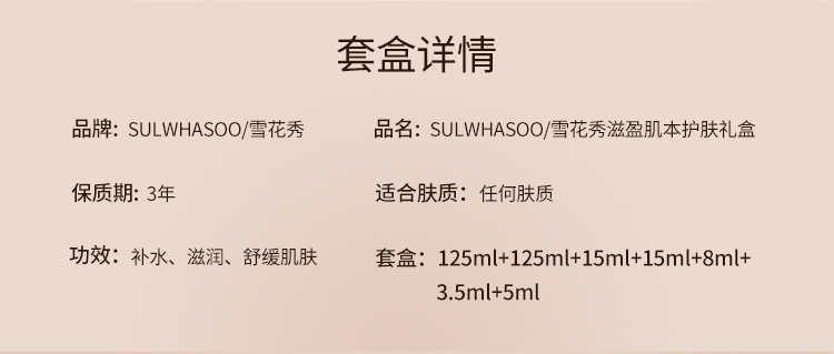 SULWHASOO雪花秀滋盈肌本护肤礼盒2件套125+125ml (新旧包装随机)