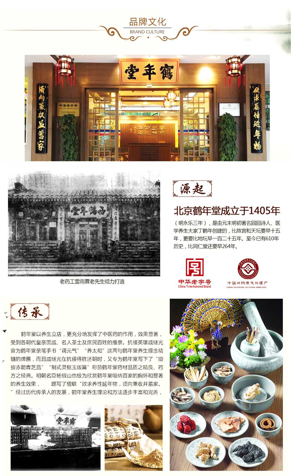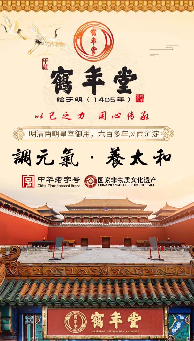 鹤年堂始建于明永乐年间,相传是由著名回回诗人、浙江药商丁鹤年1405年创建于牛街地区,明嘉靖四年(1525年)前后由曹氏接盘,迁至菜市口路北,是北京医药行业现存的、历史最悠久的老字号。 鹤年堂正厅悬挂的黑字金地“鹤年堂”三个大字的牌匾是由明朝宰相严嵩为其题写;大门上悬挂的“西鹤年堂”为严嵩之子严世藩题写;“调元气”“养太和”牌匾是明代民族英雄戚继光书写的,至今保留完好。