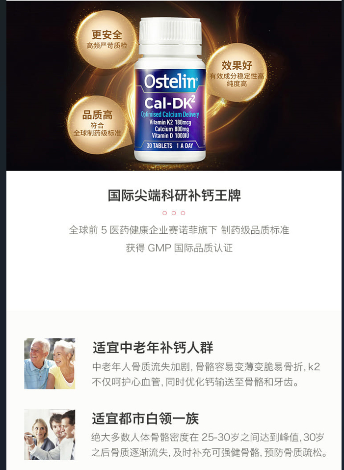 追求品质补钙人群,钙质流失严重的女性,预防骨质疏松,缺乏维生素D、K2人群