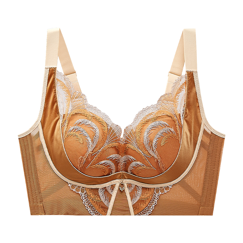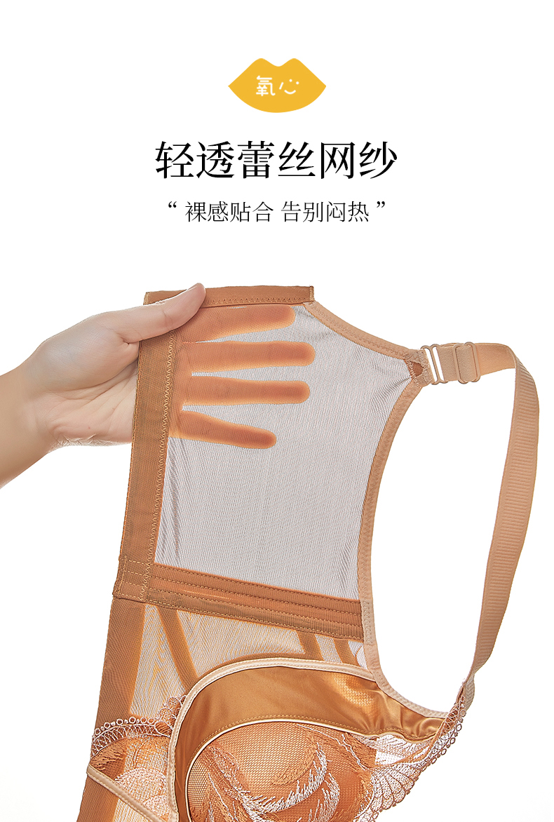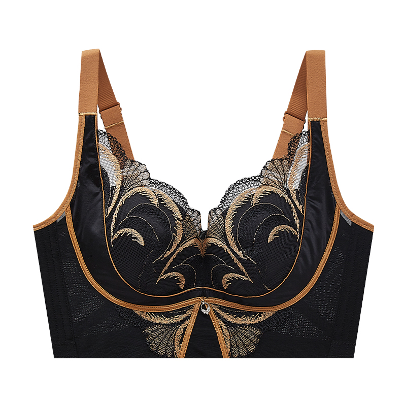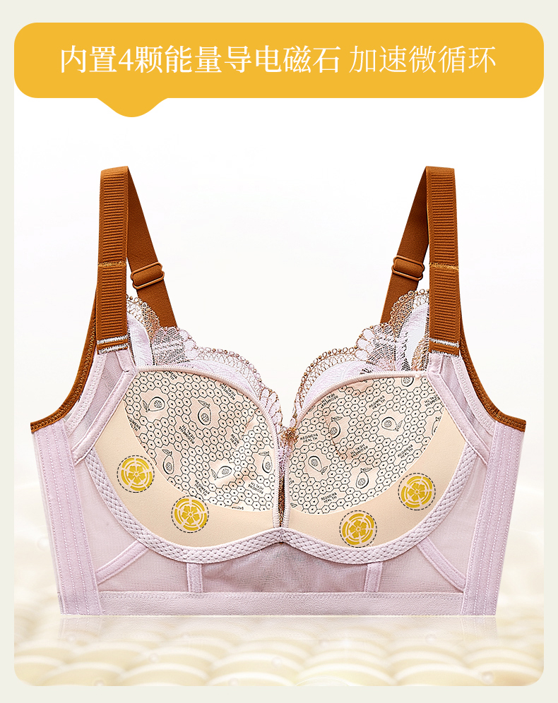 "精致浮雕刺绣,馥郁灵动,花卉凸凹有致于杯面之上,枝叶脉络交错出肌理美感 穿在身上的艺术品,加冕贵族气质,化为矜贵优雅之姿,展露恣意洒脱之美💫金丝银线勾勒仙气蕾丝 轻奢重工品质 朦朦胧胧的层叠感 上身精致高级养护一体的聚拢美胸BRA ---茶多酚内里 ---四颗养护能量石 ---温感内杯 【茶多酚温感养护内里】 植物养肤 天然无刺激 吸湿除汗 抗菌抑菌 保持皮肤干爽清洁 手感顺滑柔软 具有良好的吸湿透气性【W型防滑月牙托 //导电磁石】⭐ 无钢圈禁锢 W型向上温柔聚拢 提拉胸型 呈现饱满圆润自然弧度 内置4颗能量导电磁石 释放微能量 加速微循环 减少电磁波对人体的影响【加高侧比侧收副乳赘肉】✝ 双软骨稳定支撑 收拢腋下多余脂肪 调整胸型 把肉肉向罩杯中聚拢 脂肪不外溢 副乳不见了 不下垂不外扩 好心情也跟着来【透气网纱美背】 轻透蕾丝网纱 裸感贴合 告别闷热 四排五扣+可调节防滑肩带 平抚背部脂肪 柔软包裹无痕美背 U型美背显现 魅惑四方💖细节展示 质感有颜 科技内里 养护合一⭐【多彩色系 惊艳上身】 木槿紫:浪漫的际遇,优雅的着装,每一次对视都如初恋般心动 香槟金:独特的优雅,质感高级轻奢,尽显女性柔美,女神必入色 🧡琥珀棕:光芒万丈的高贵 , 咫尺优雅,生生入梦 🖤玛瑙黑:冷清与孤傲,智慧从容,有着非凡的品质与审美"