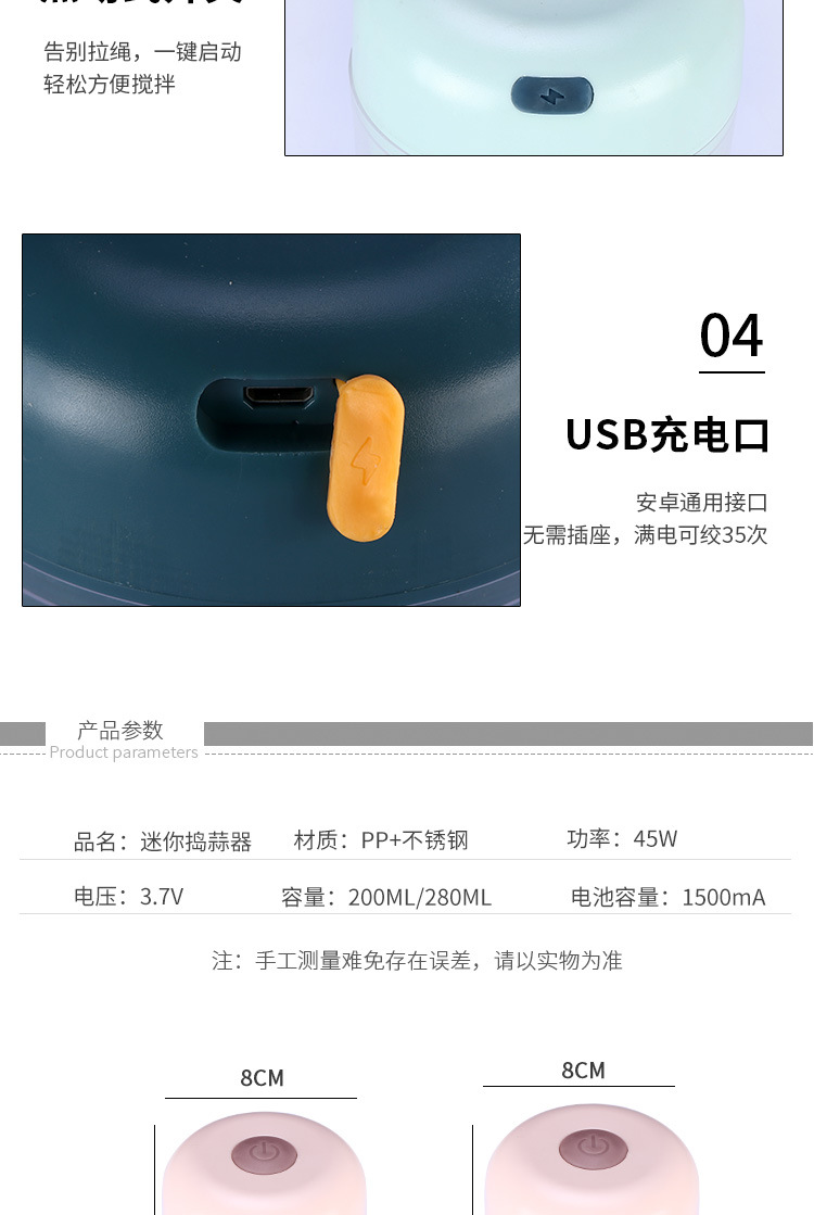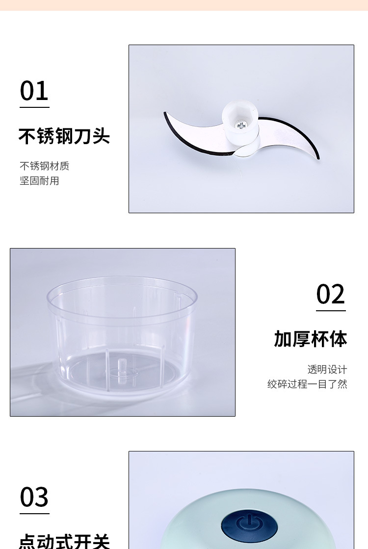 家实 迷你无线电动捣蒜器宝宝婴儿辅食料理机 辣椒蒜泥机 家用绞肉机b120
