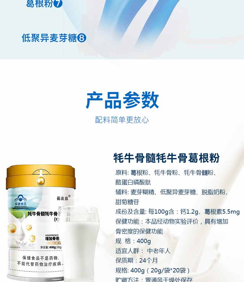 牦牛骨髓牦牛骨葛根粉(中老年无糖型)20g*20条/听南京同仁堂 增强骨密度老年中老年