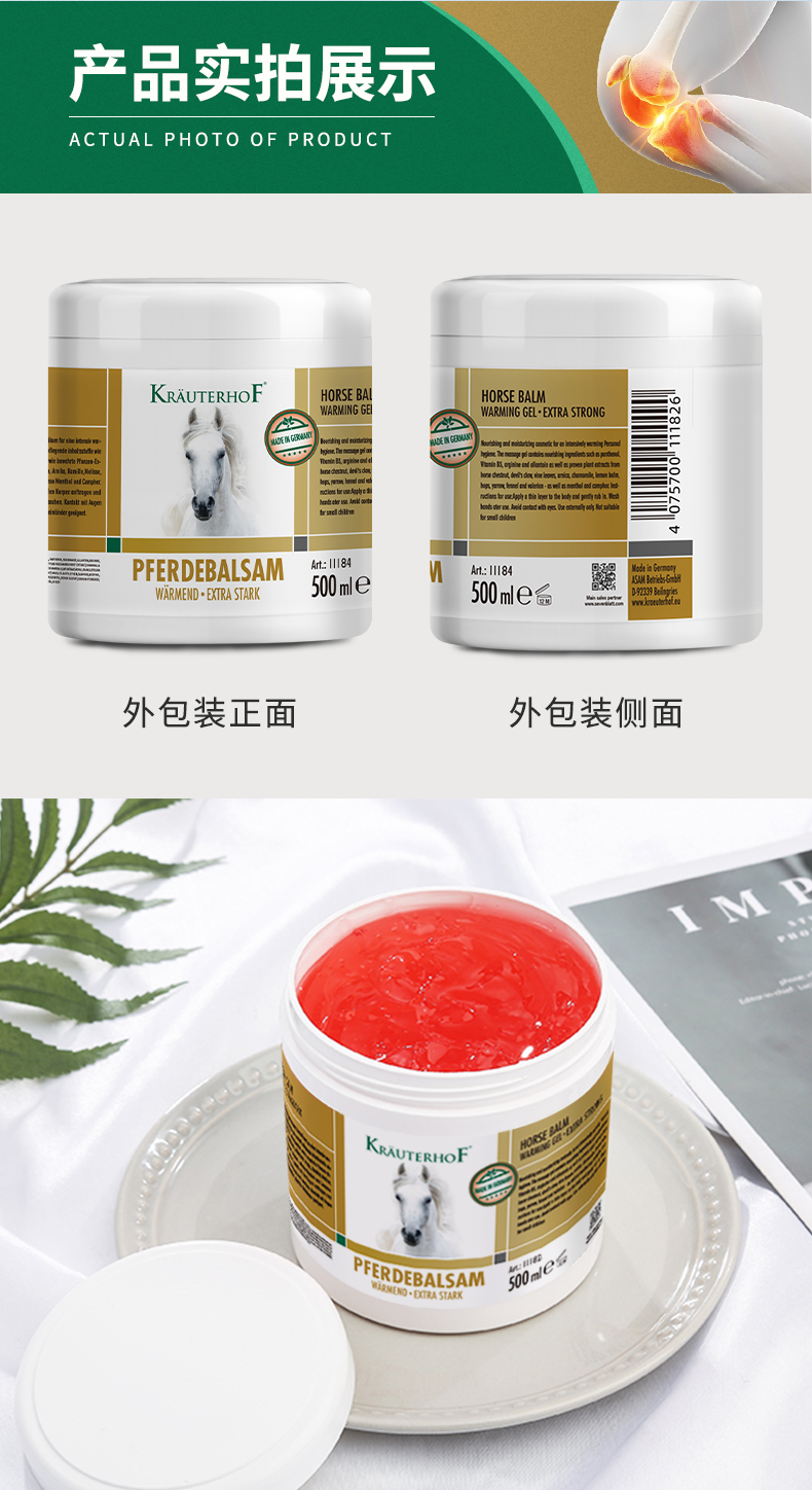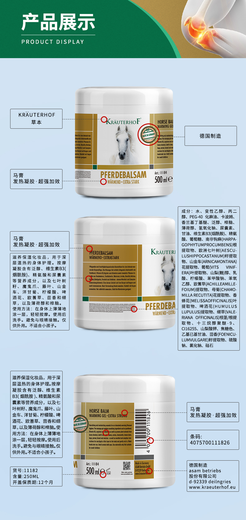 【中文标签】krauterhof七叶庄园德国马膏250/500ml缓解肌肉酸痛肩周炎肩颈酸痛
