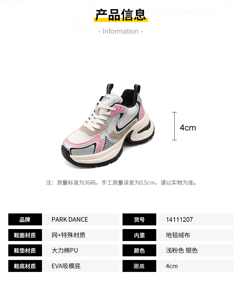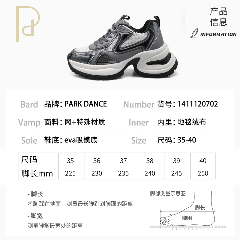 帕可丹丝Parkdance【专柜同款】24年圆头厚底小蛮腰时尚百搭休闲老爹鞋【2730781】