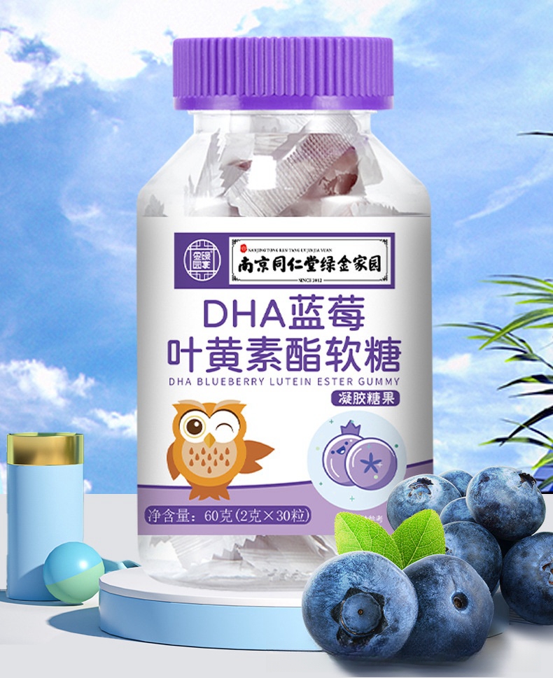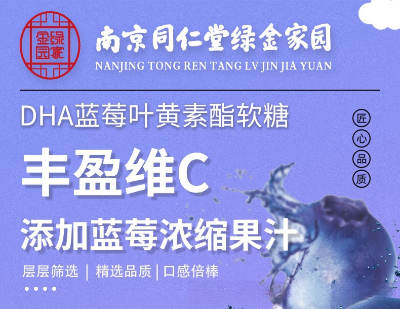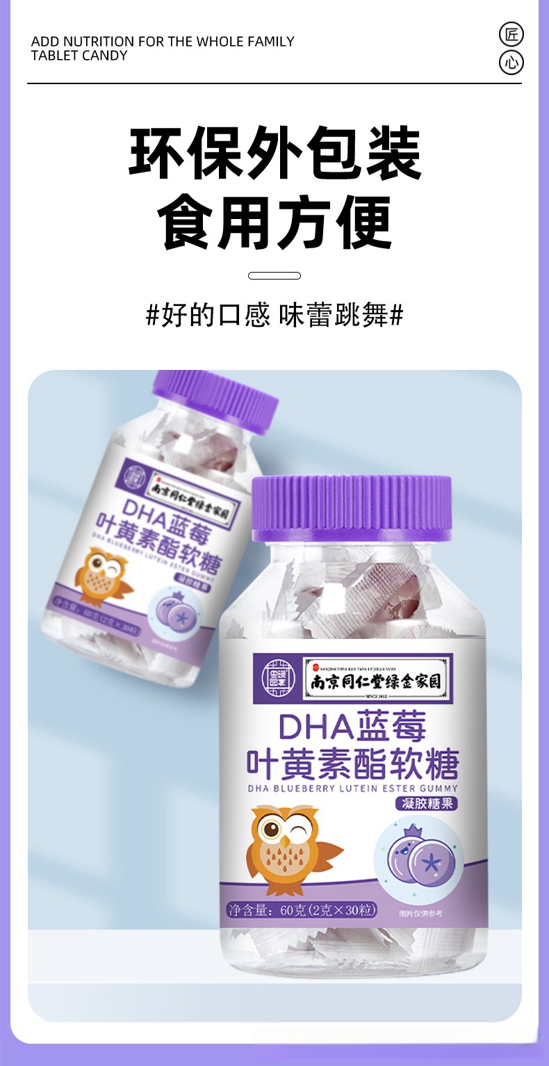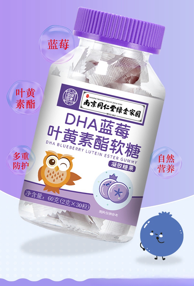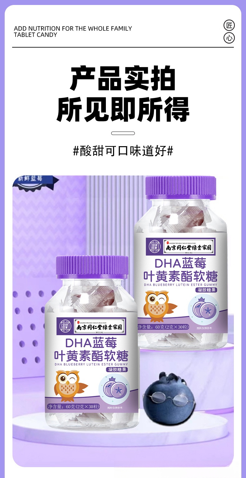 南京同仁堂绿金家园黑加仑蓝莓叶黄素酯片压片糖果成人叶黄素开盖即食70g/盒