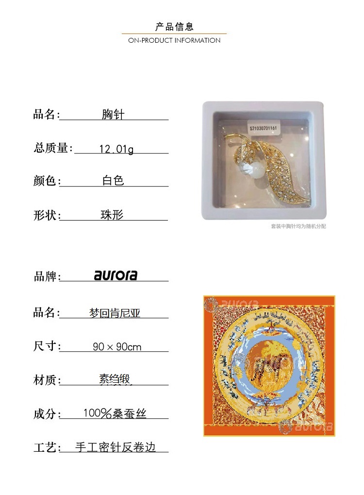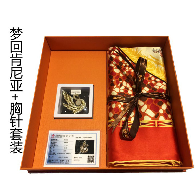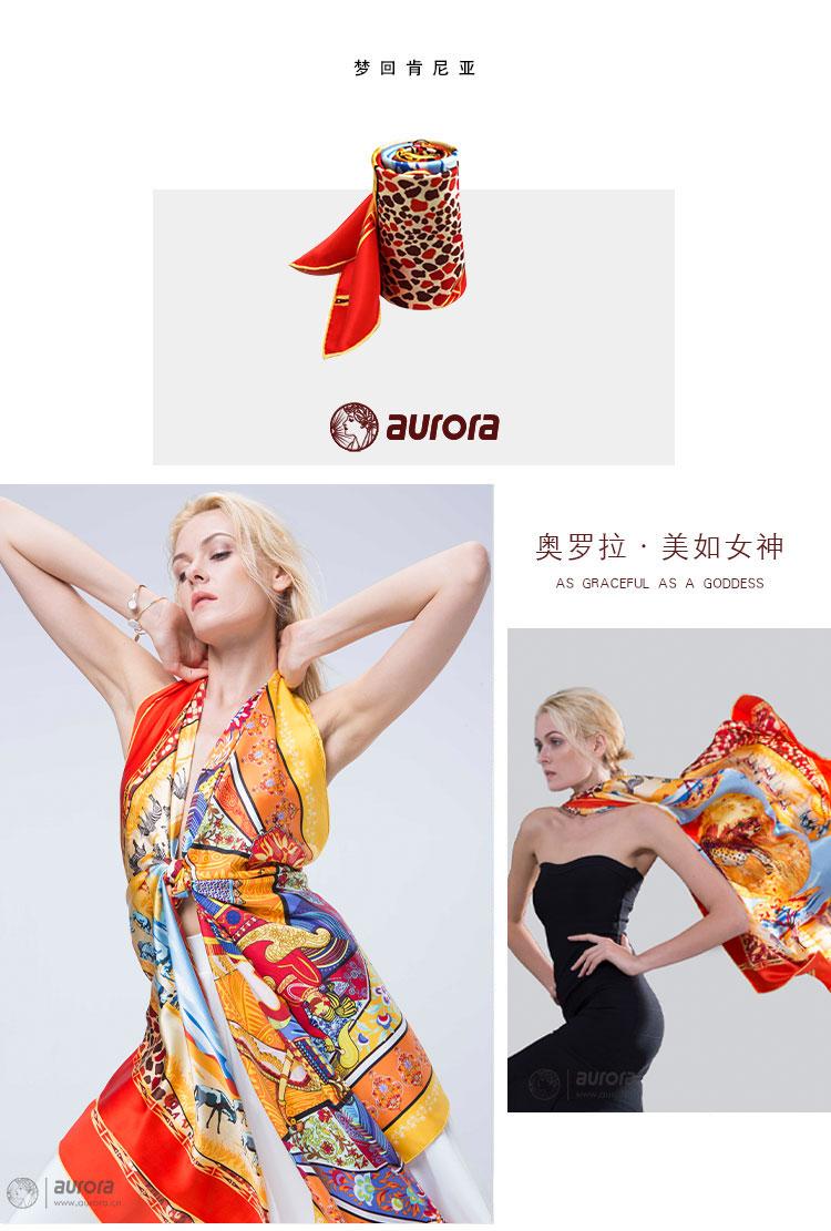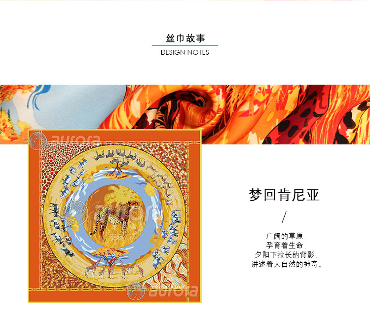 奥罗拉aurora梦回肯尼亚 真丝大方巾90×90cm+胸针套装