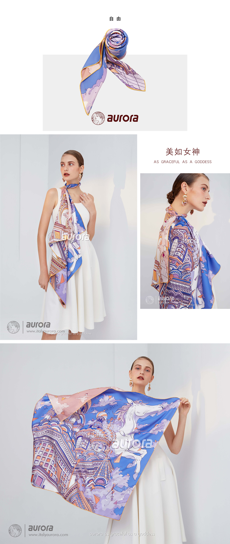 奥罗拉aurora 桑蚕真丝方巾-双面自由 90*90cm盒装