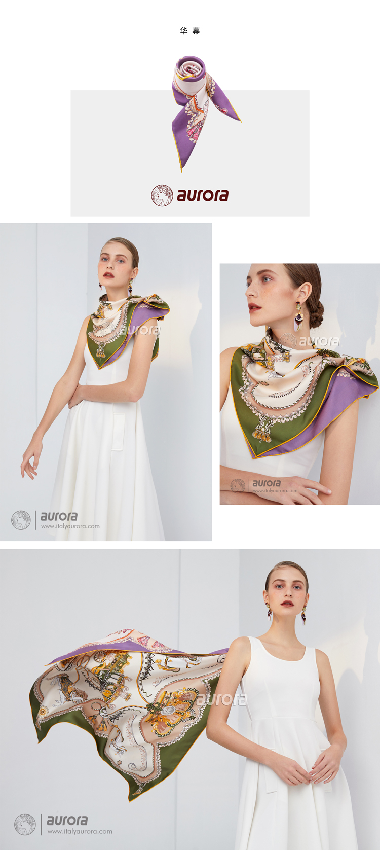 奥罗拉aurora*SOIZIC 梦回肯尼亚 真丝大方巾90×90cm+艺术晴雨伞套装