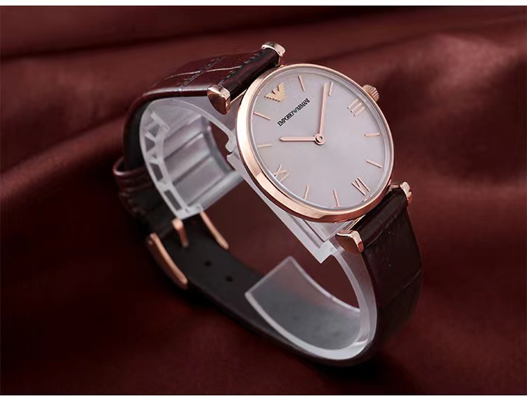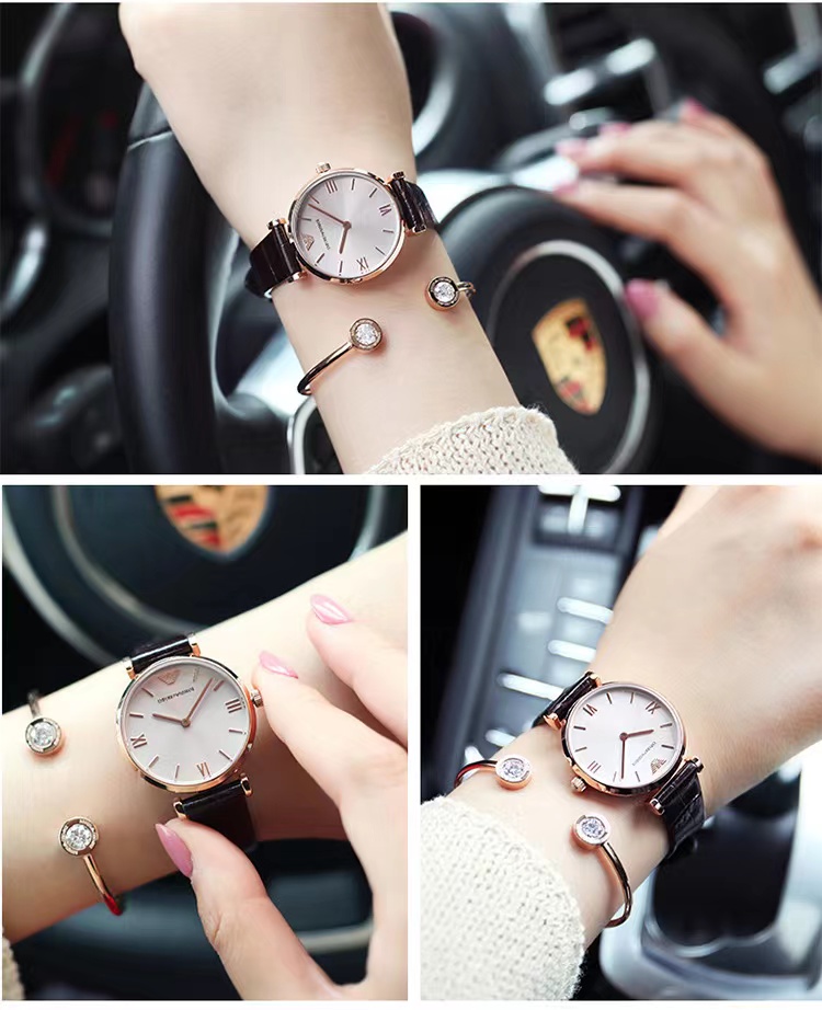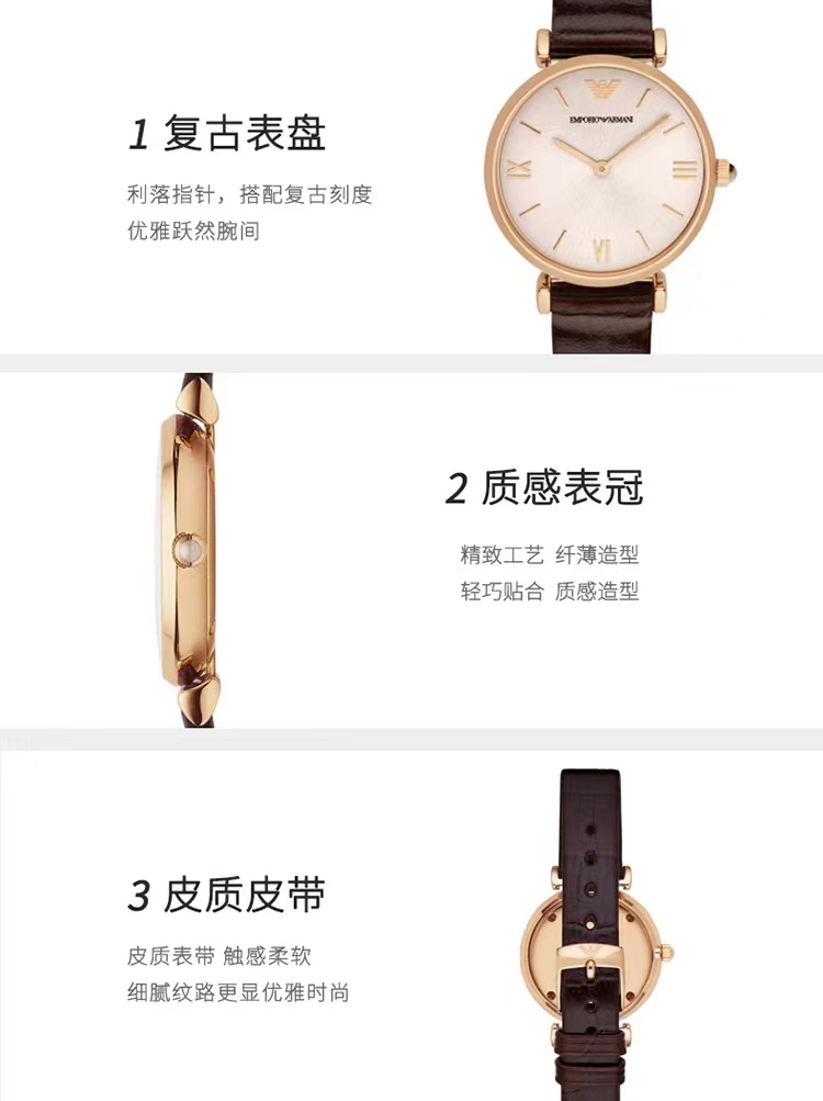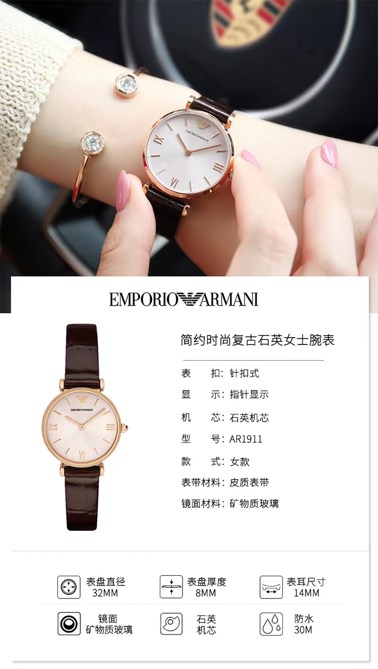 【社群精选】 Armani阿玛尼手表女 休闲简约复古优雅时尚皮带石英女腕表AR1911