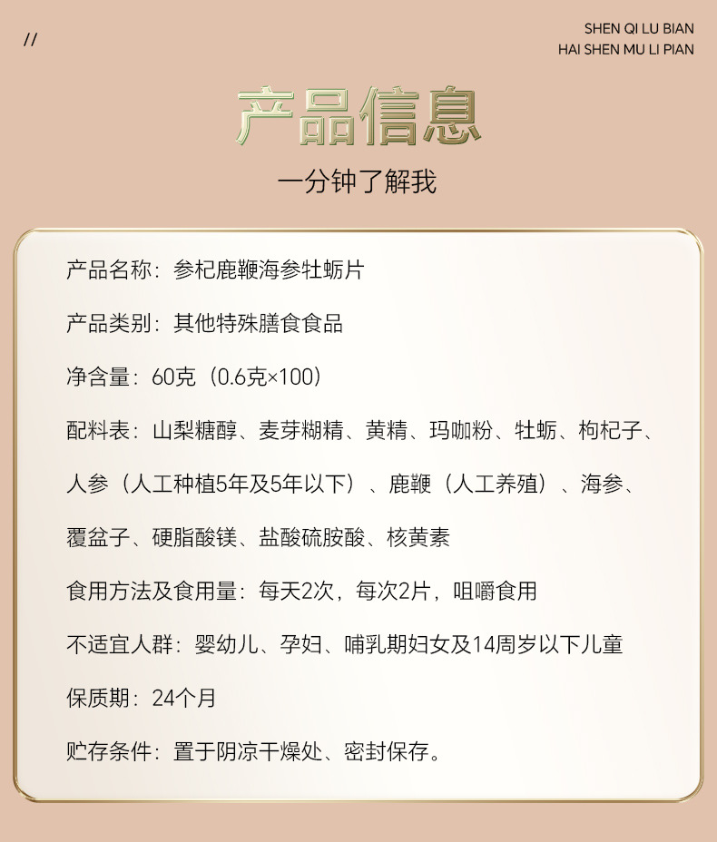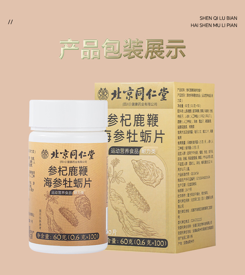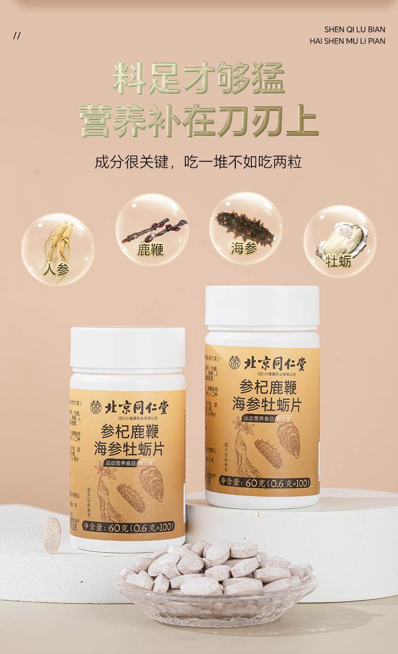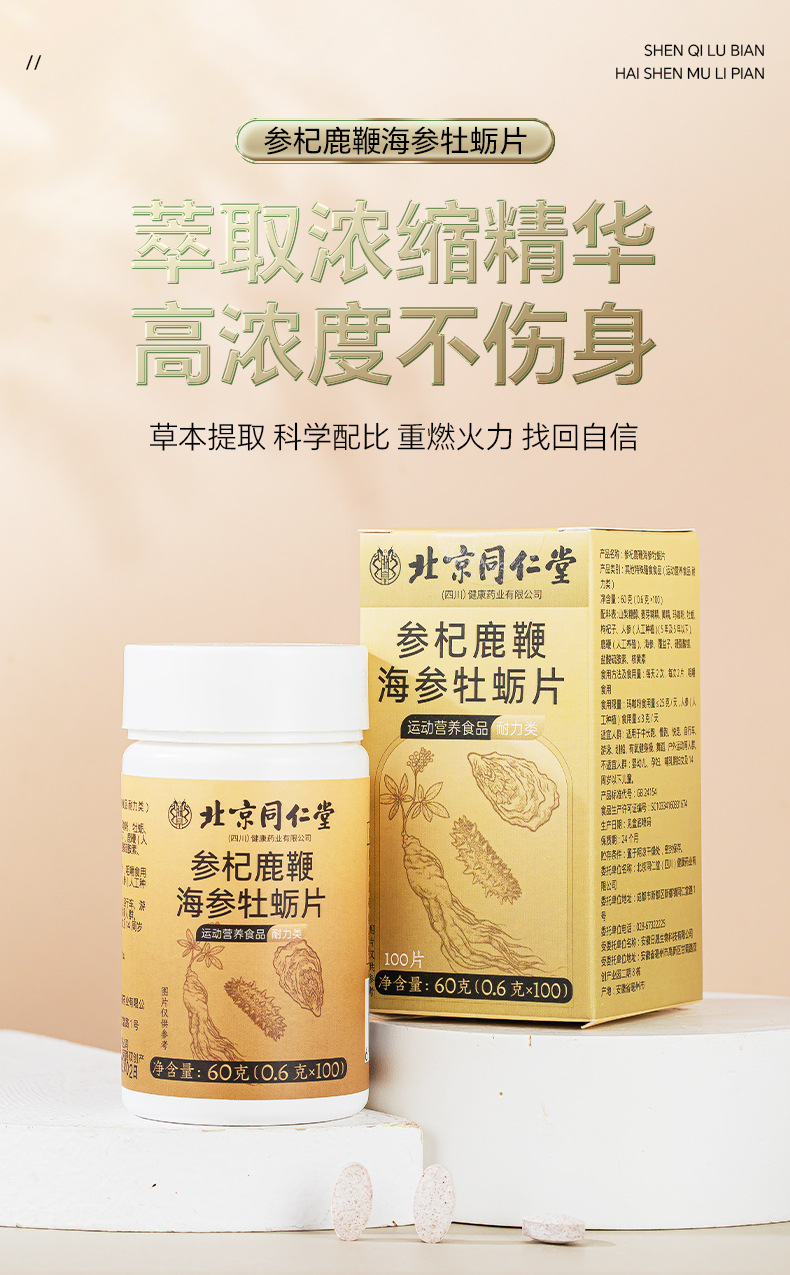 【北京同仁堂】参杞鹿鞭海参牡蛎片100片/瓶成人男性爆款熬夜加班体力不支浓缩精华