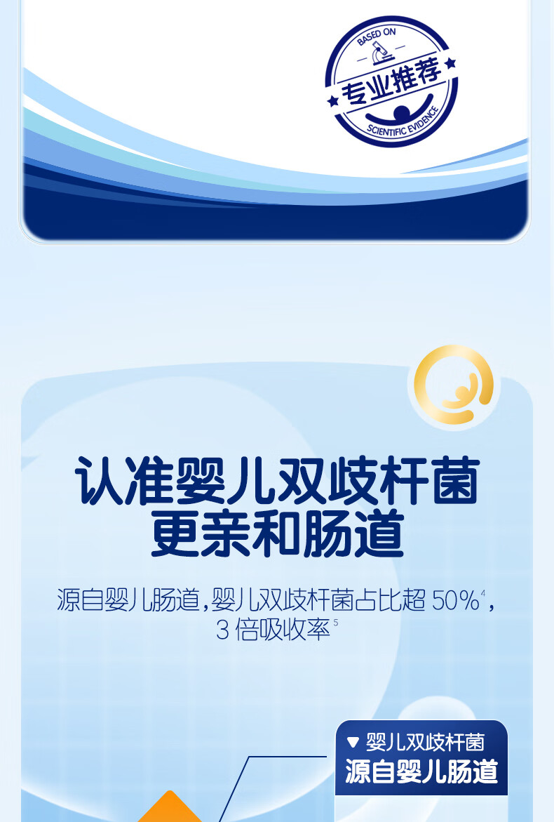 法国进口益生菌,活性持久;含菌种类多;人体自有菌种,亲近肠道所需