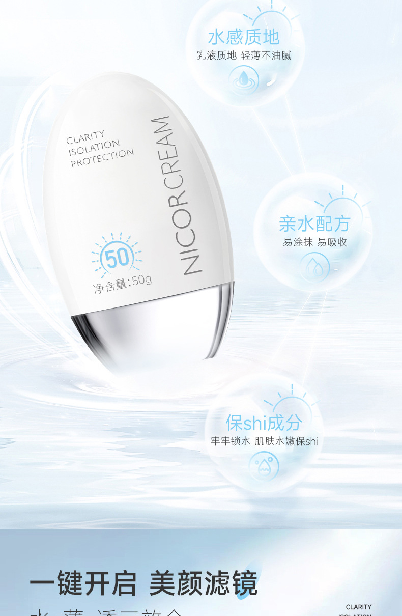 Nicor抖音快手直播隔离防护霜喷雾全身防水防汗防学生女军训紫外线