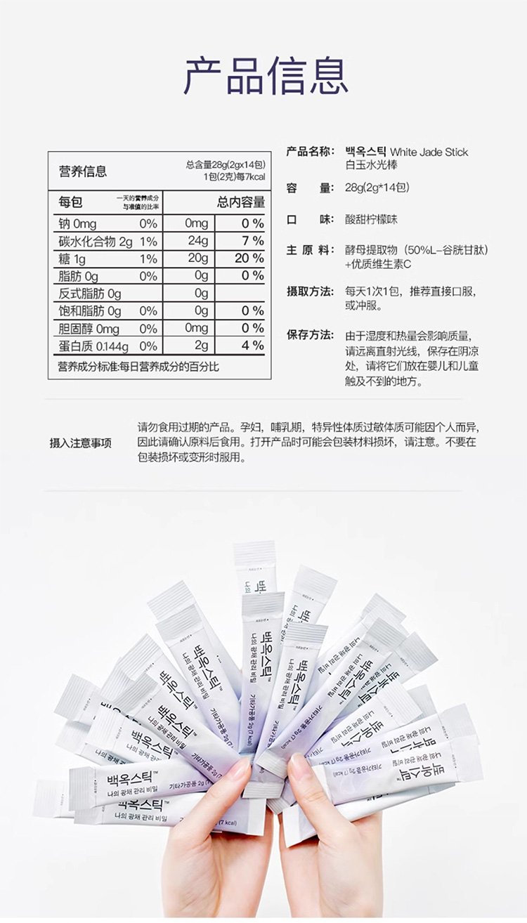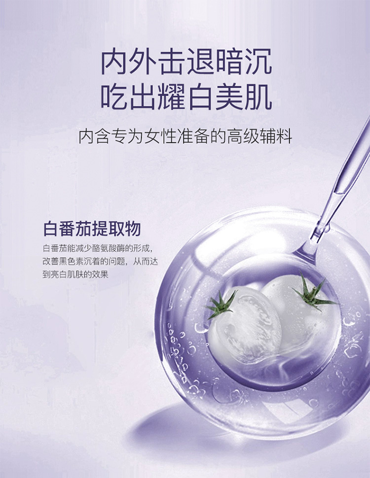 提亮肤色,美白淡斑,抑制黑色素,2g×14条/盒,1日1次,1次1袋,直接口服或冲服